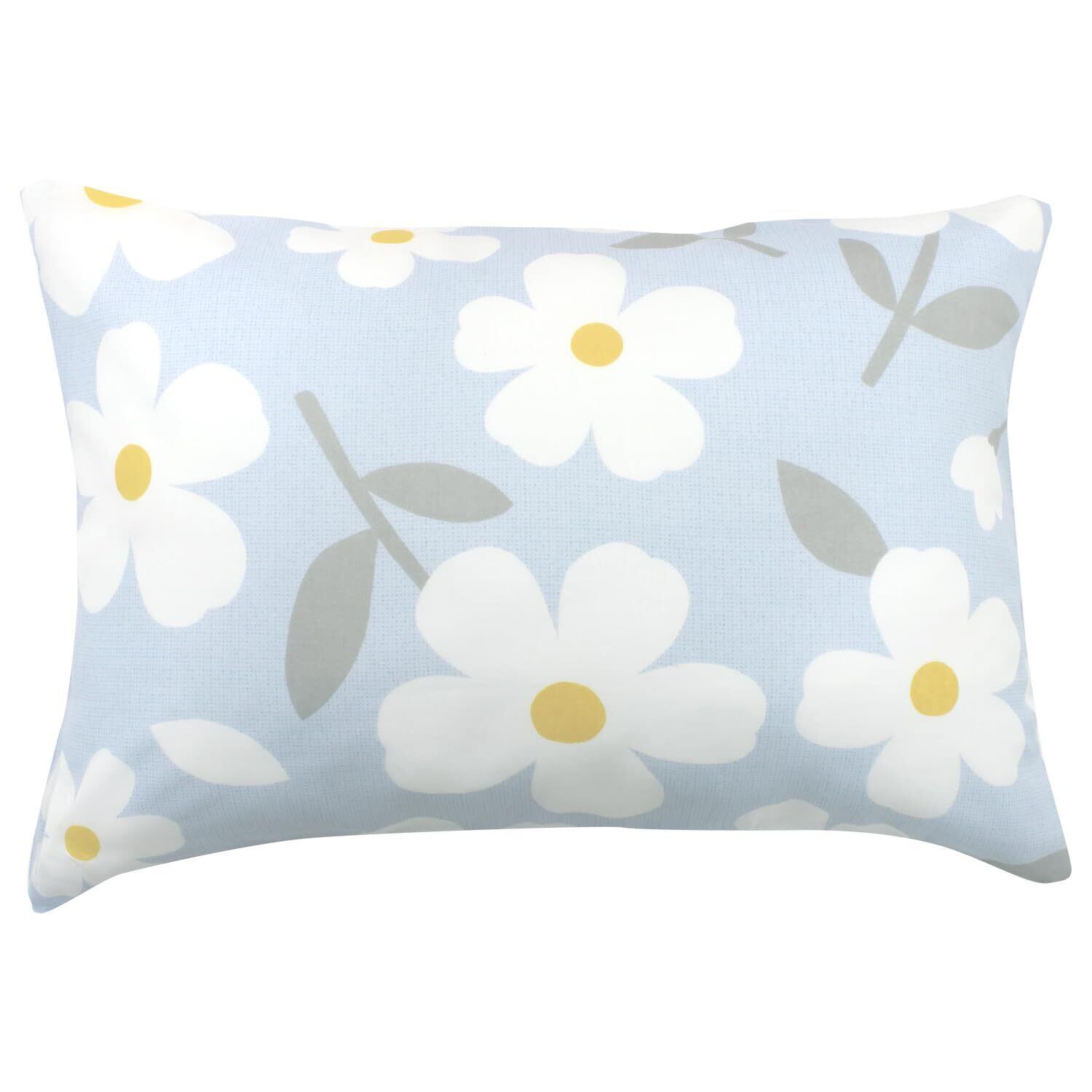 メリーナイト 枕カバー 「フラワー」 サックスブルー 約43×63cm ファスナー式 まくらが入れやすい 綿混素材 速乾 シワになりにくい 洗える 衛生 清潔 オールシーズン MN16151-76