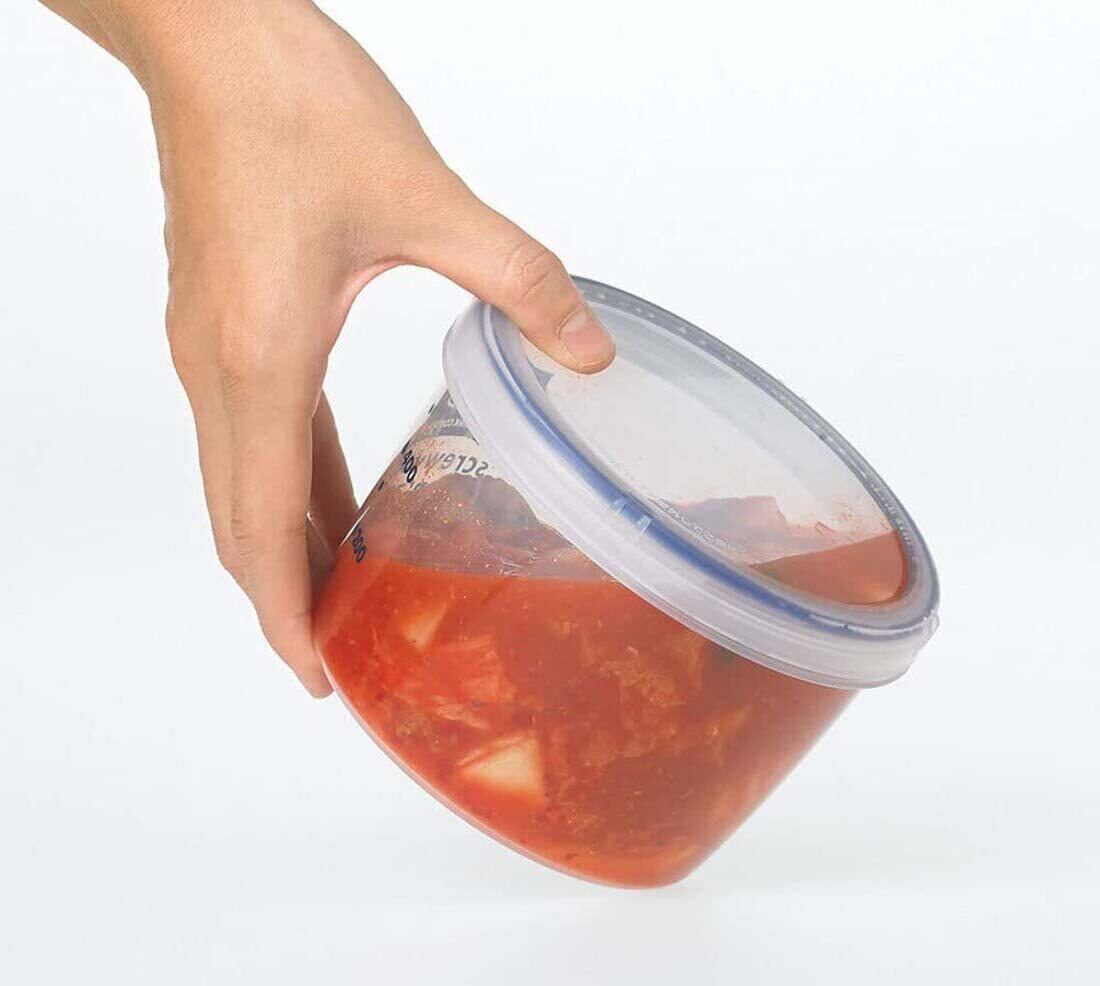 【お得な2個セット】パッキン付き完全密封容器●汁物やニオイの強い食品に最適●フタを素早く開閉できるクイック構造●内容量が一目でわかる目盛り付き●銀イオン配合の抗菌加工なので、雑菌の繁殖を抑え衛生的に使用できる●電子レンジ、食洗機の使用可能