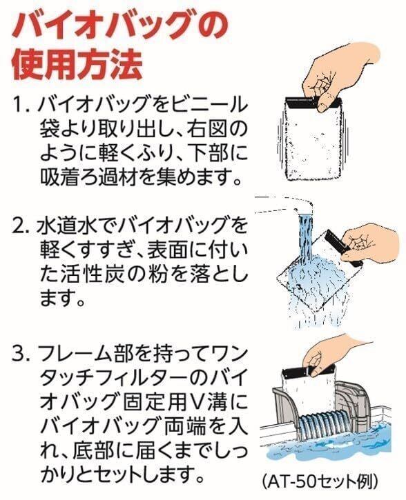 本品を袋から出し、水道水で軽くすすぎ、フィルターケースにしっかりとセットします。