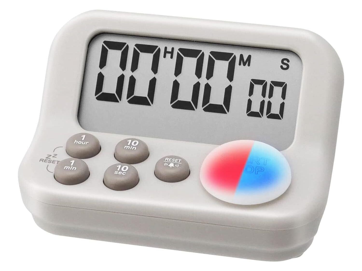 【使いやすいポイント】 視認性の良い斜め45度の画面表示を採用。座った姿勢で見た時に画面がちょうど見やすいよう設計されています。ボタンも画面の前についており、操作がしやすくなっています。最大セット時間99時間59分50秒と超長時間なので色々な作業にも対応します。アラームは「無音」に切り替えることができるので静かな場所でも使用できます。カウントダウン終了後、自動でカウントアップを始める機能付き。特に試験勉強におすすめです。