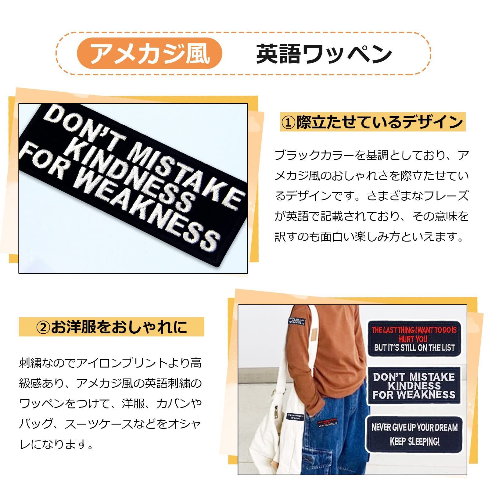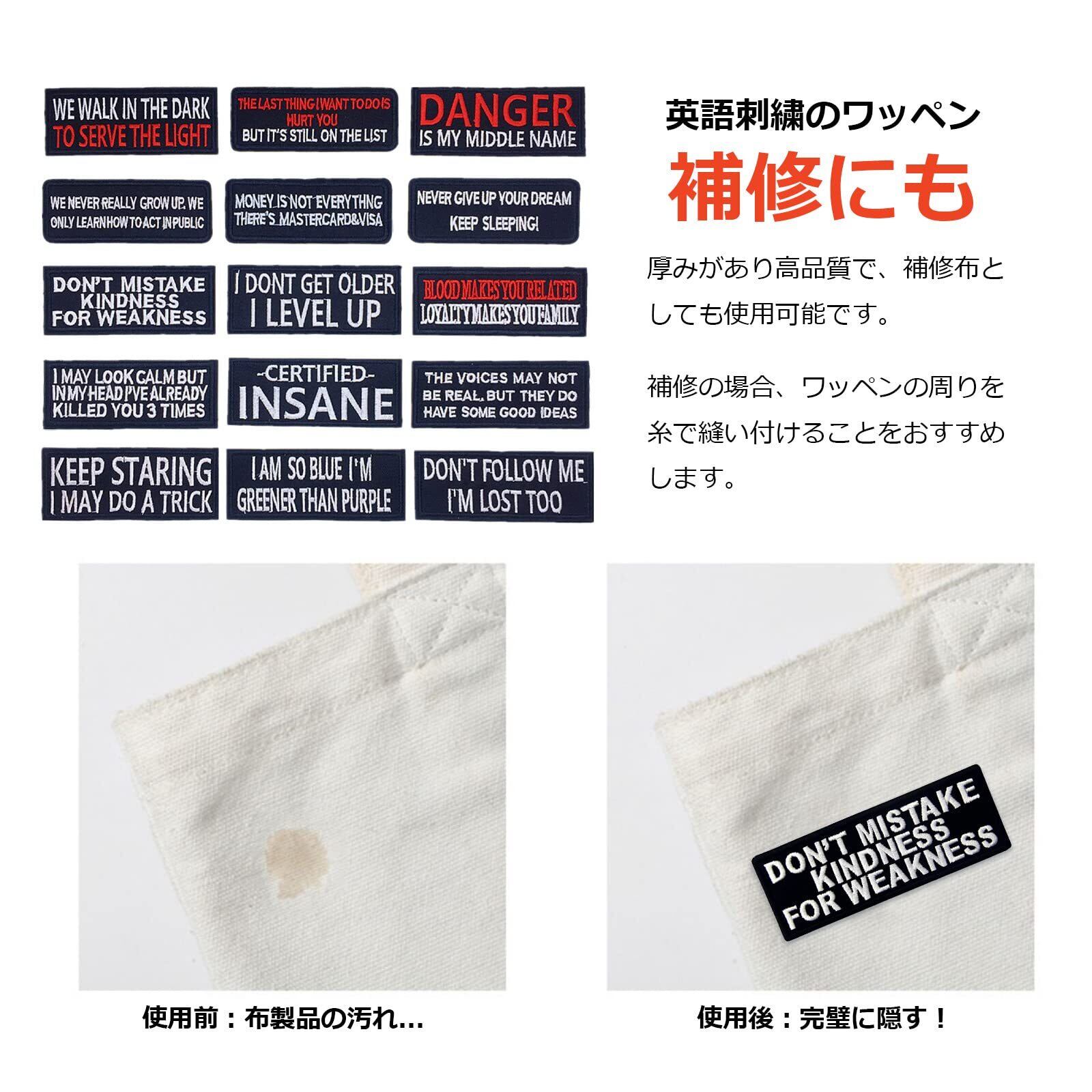 【お洋服をおしゃれに!補修にも!】 お手持ちの洋服やカバン、帽子などにペタッと貼るだけで簡単にリメイクできます。刺繍なのでアイロンプリントより高級感あり、アメカジ風の英語刺繍のワッペンをつけて、洋服、カバンやバッグ、スーツケースなどをオシャレになります。厚みがあり高品質で、補修布としても使用可能です。補修の場合、ワッペンの周りを糸で縫い付けることをおすすめします。