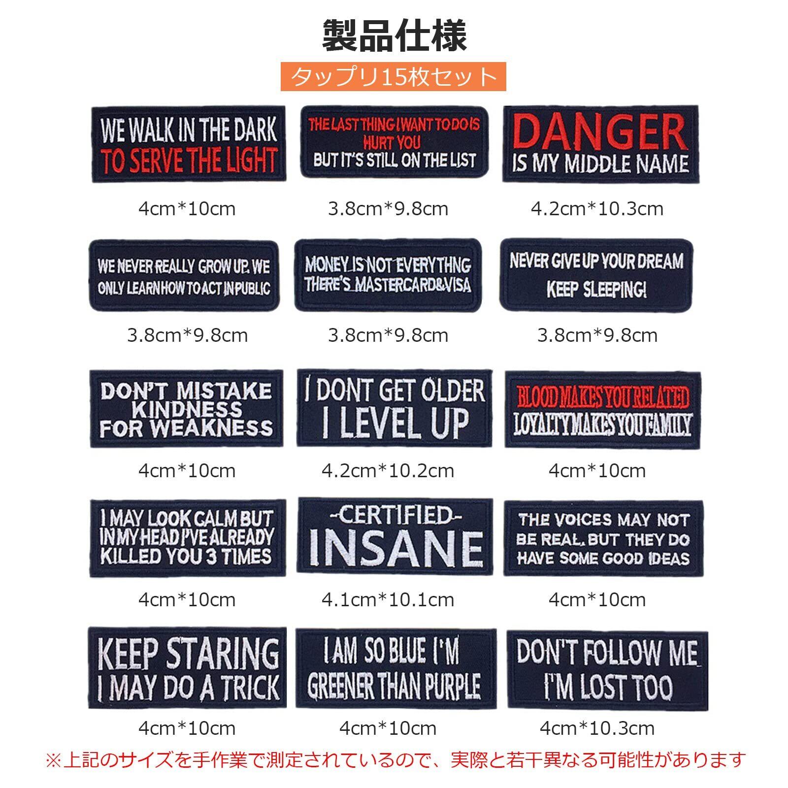 ワッペン アイロンワッペン 英語刺繍 15枚セット 刺繍 アップリケ ミリタリー アップリケワッペン アイロンで貼り付け ワッペン 男子ジャケット パッチ 補修 DIY 手芸 裁縫 衣類 飾りメンズ 黒色 アメカジ PureSino (ブラック)