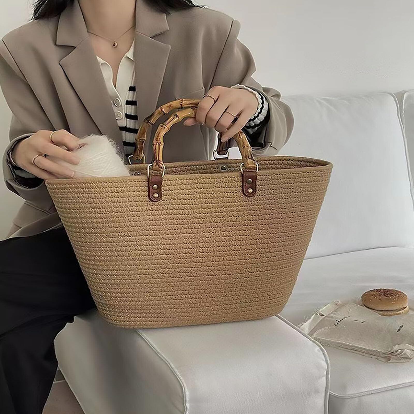 【高品質な素材】竹製ハンドルはプラスチック素材で作られており、表面が滑らかで耐久性があります。手触りが非常に滑らかで細やかです。ファッショナブルで快適なDIYハンドメイドアクセサリーです。ハンドルは軽量で握りやすく、金属のバックルは耐久性があり、防腐・防錆加工が施されています。