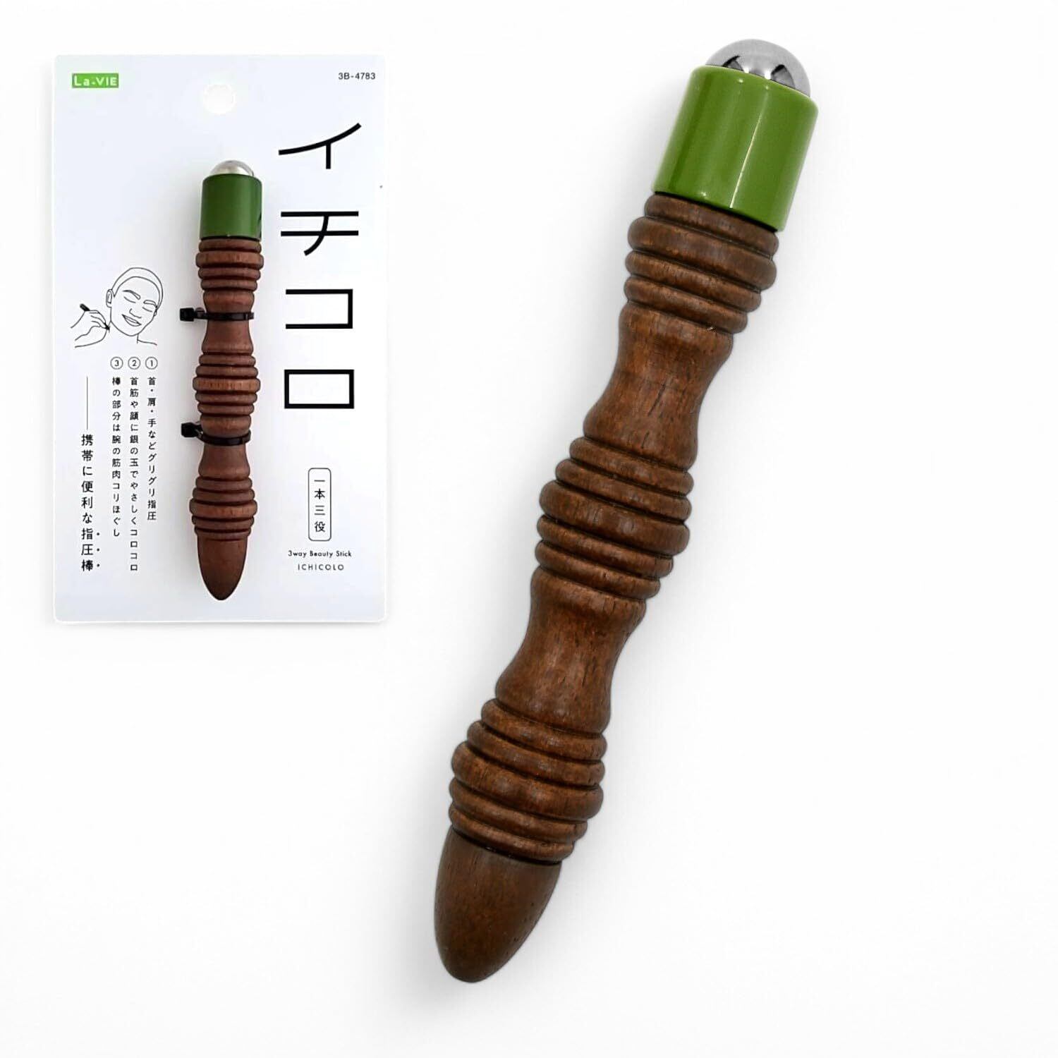 La-VIE(ラヴィ) イチコロ 3役 指圧棒 木製 肩甲骨 頭 背中 腰 足の裏 ツボ押し棒 指圧器 3B-4783【メーカー純正品】