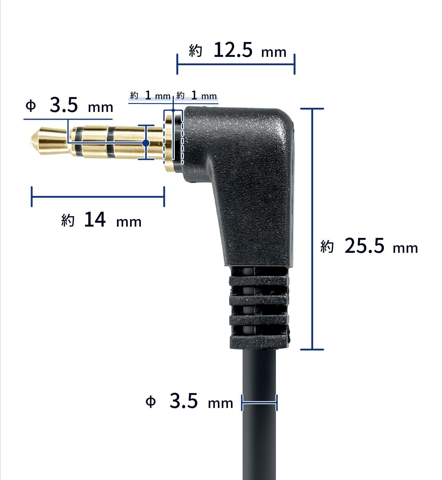 φ3.5mm ステレオミニプラグケーブル 30cm(L型/L字プラグ オス-オス) オーディオケーブル 0.3m C-082