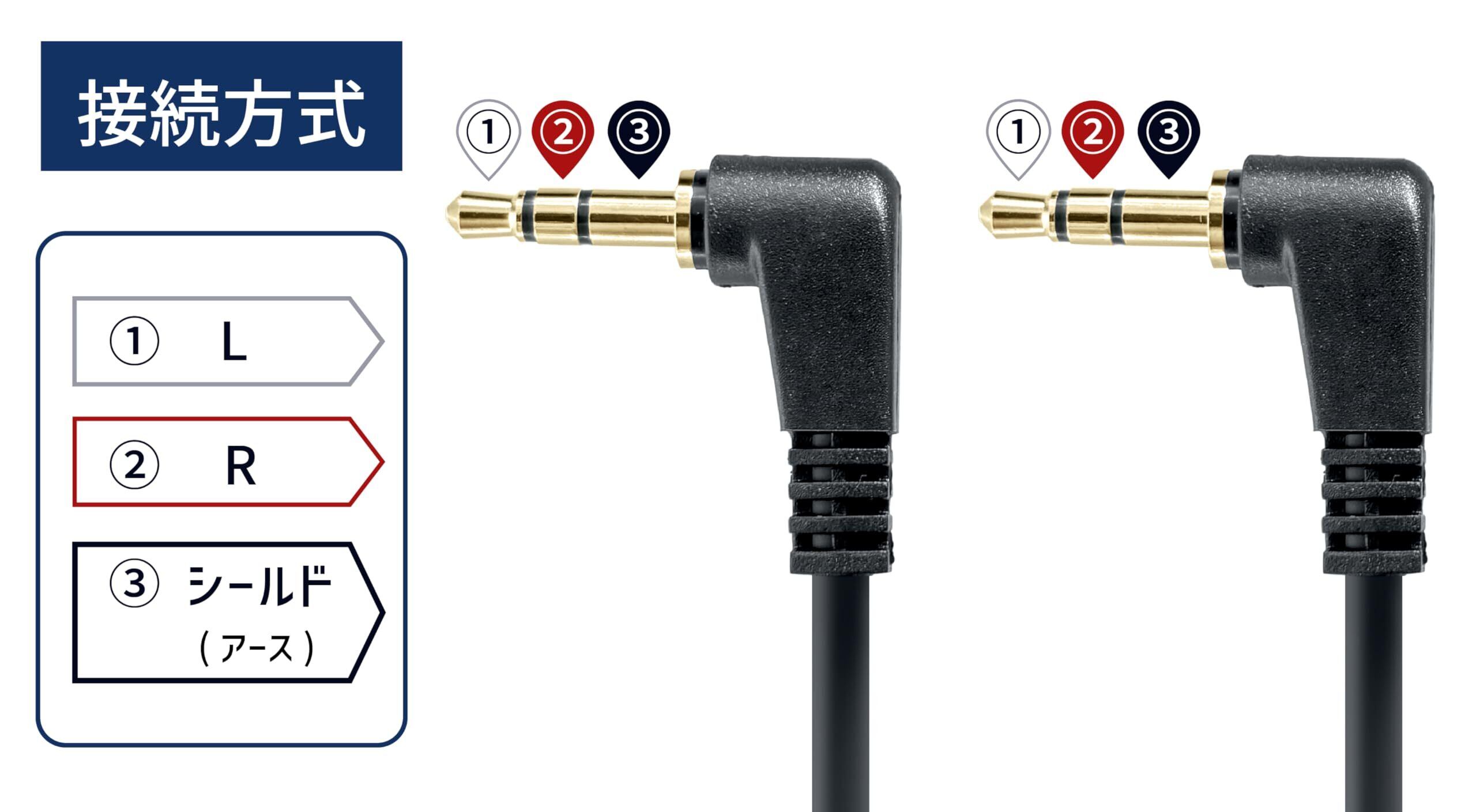 片側: φ3.5mm【L型】ステレオミニプラグ×1 (オス)