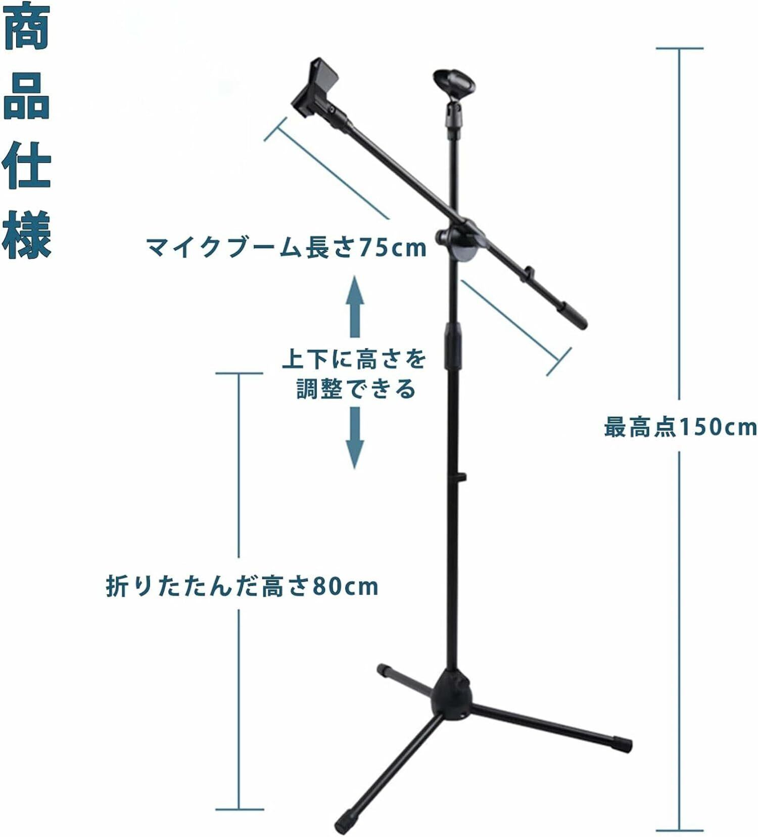 マイククリップ、折り替え可能で軽量、両腕調節可能、スタジオ録音、バンド練習、学校音楽プログラム、スピーチ、FX103のために完璧な三足ブームマイクスタンド