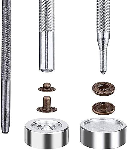 【パッケージ内容】収納ボックスにはスナップボタン120セット(各色30セット)ホック打ち工具1セットが入っており(切れ味の良いハトメ抜き(ポンチ)、凹型打ち棒、凸型ち棒、打ち台)、カラーはゴールド、シルバー、ブロンズ、アイアンブラック