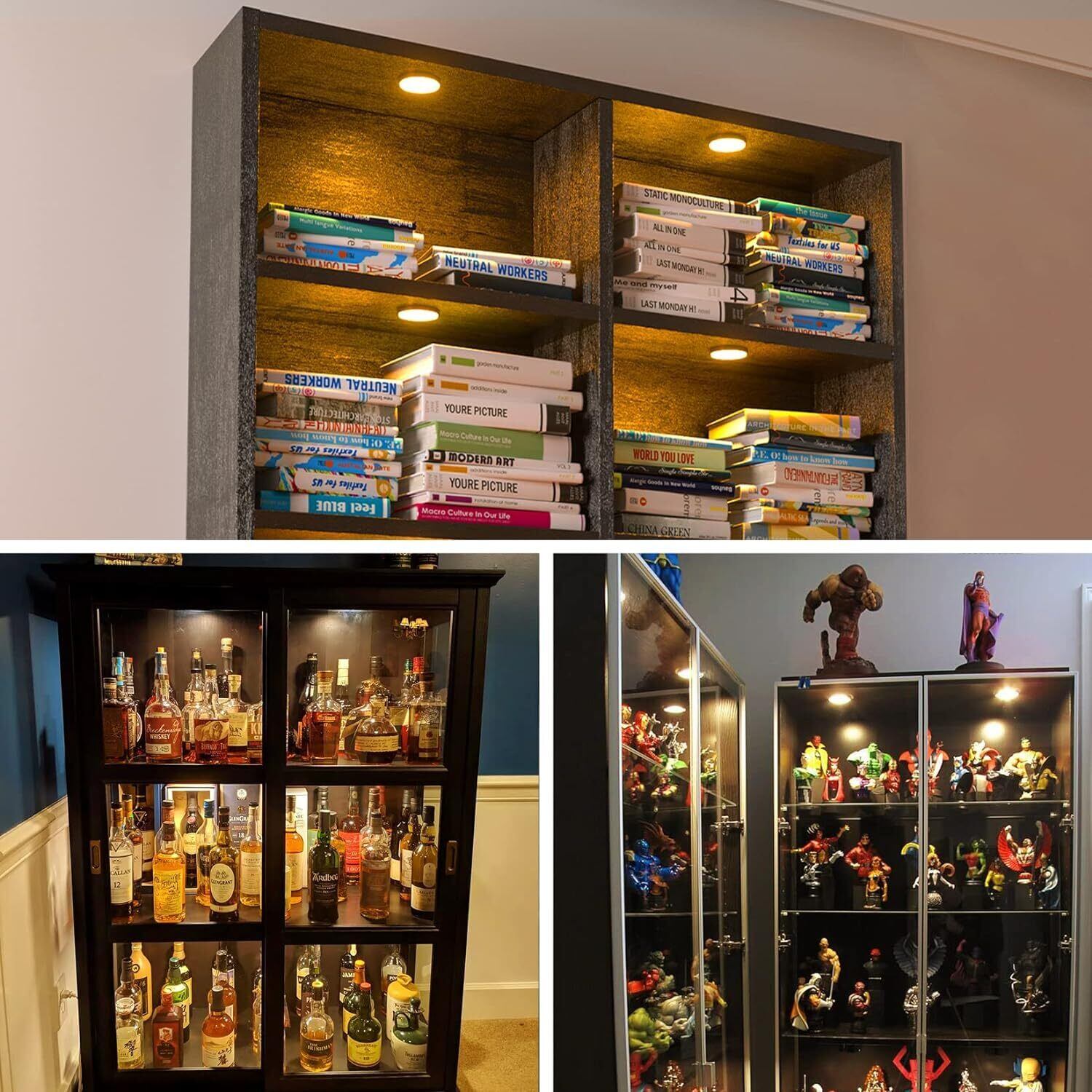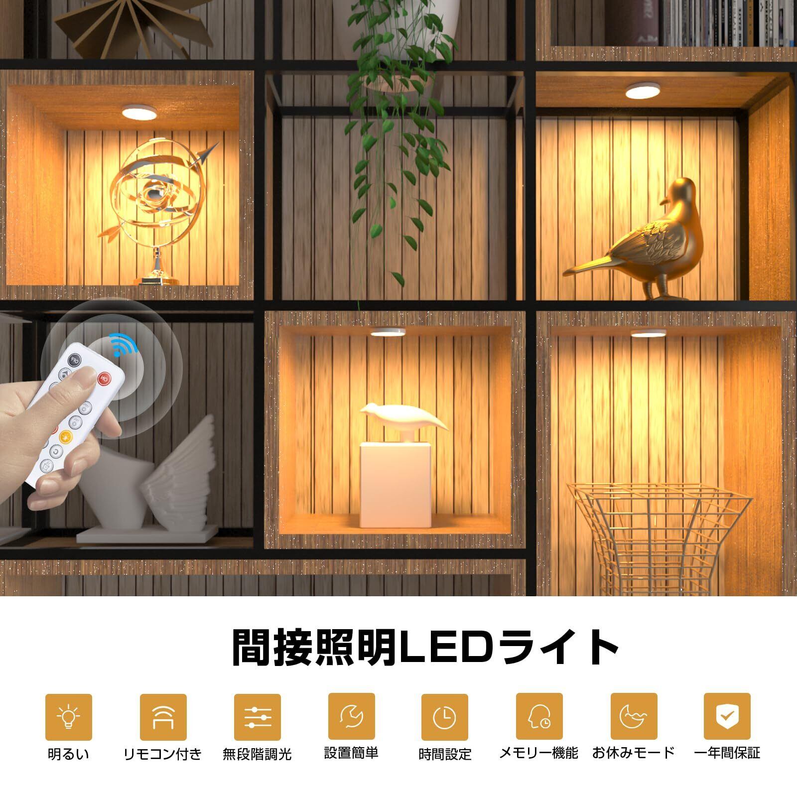 Wobane キャビネットライト 4個セット 電球色 棚 led (リモコン付・調光可能・5段階消灯タイマー・メモリー機能)工事不要 貼り付け式 間接照明 超薄型 700ルーメン 高演色 展示灯 フィギュア/キッチン/クロゼット/ショーケース照明 小型 led light 省エネ PSE認証済