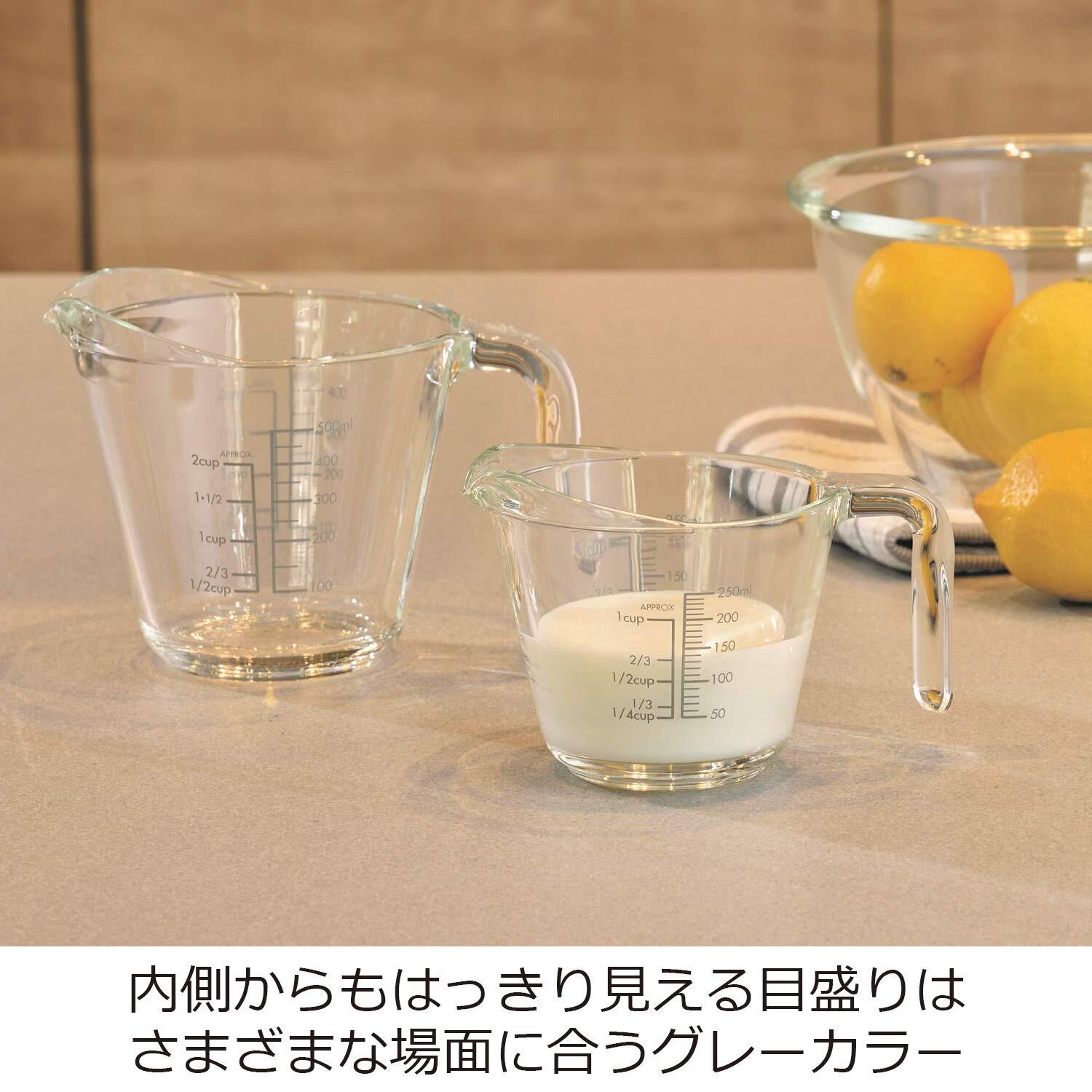 シンプルで使いやすく、衛生的に使える、耐熱ガラス製のメジャーカップ