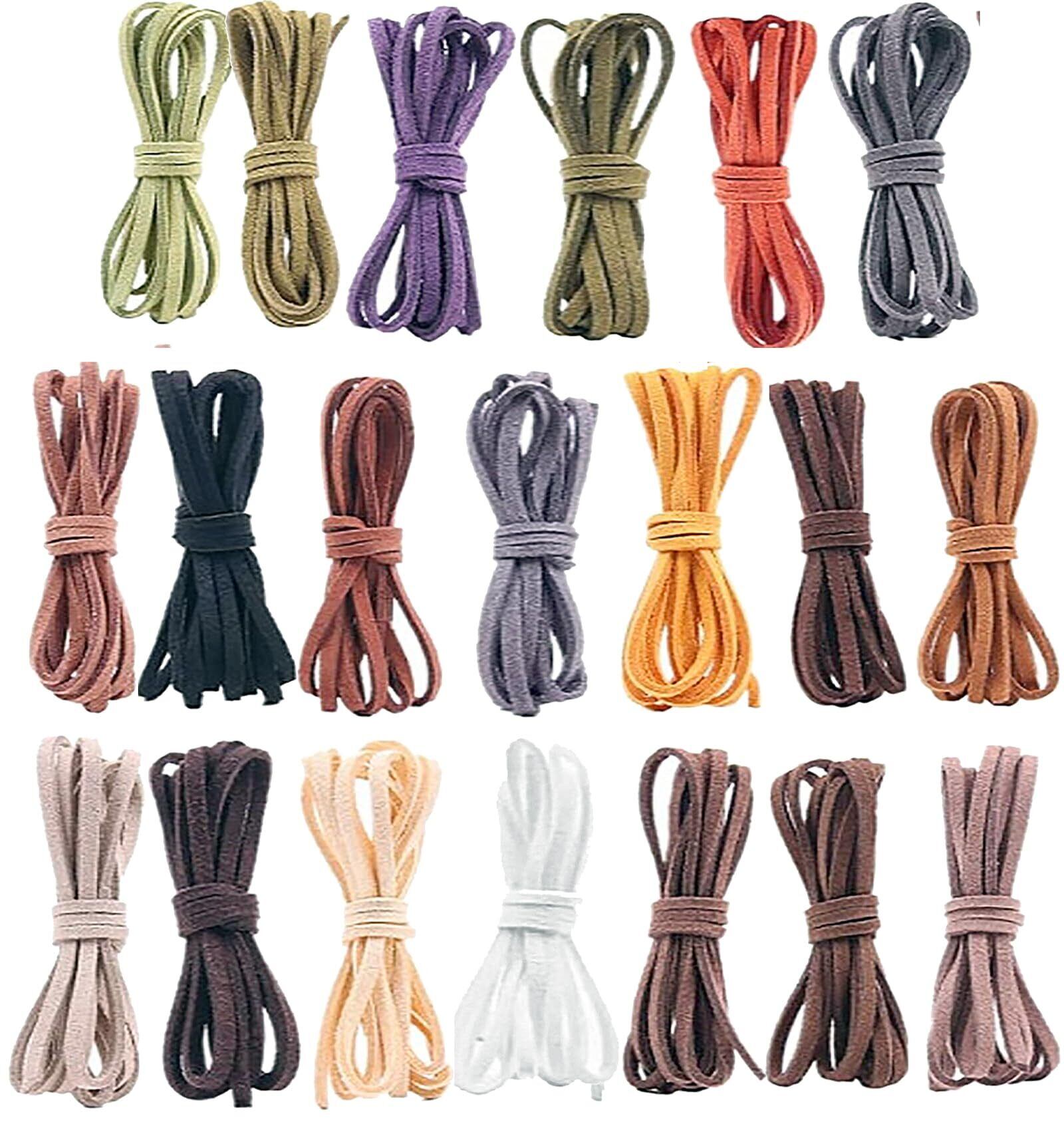 スエード 革紐 8色/60色セット 幅3mm 革ひも 皮ひも レザー 紐 レザークラフト アクセサリー用紐 DIY 手芸材料 スウェード調 (20色セット 各長さ1m)