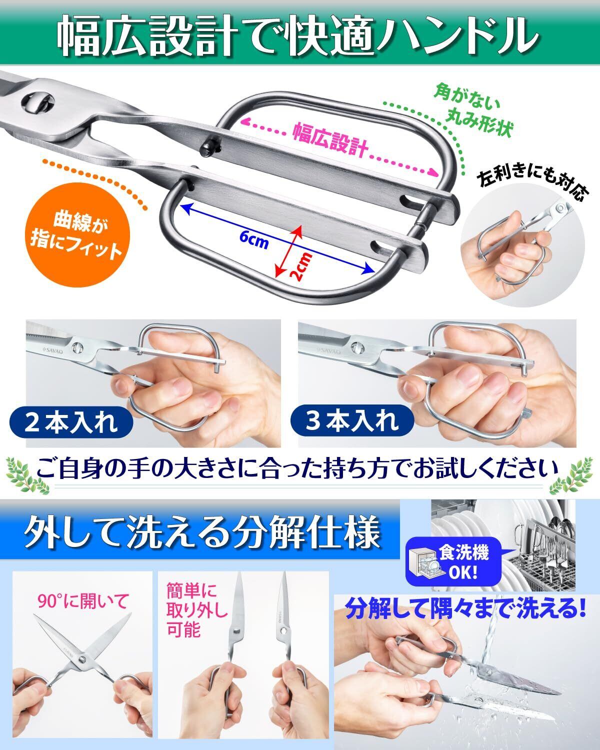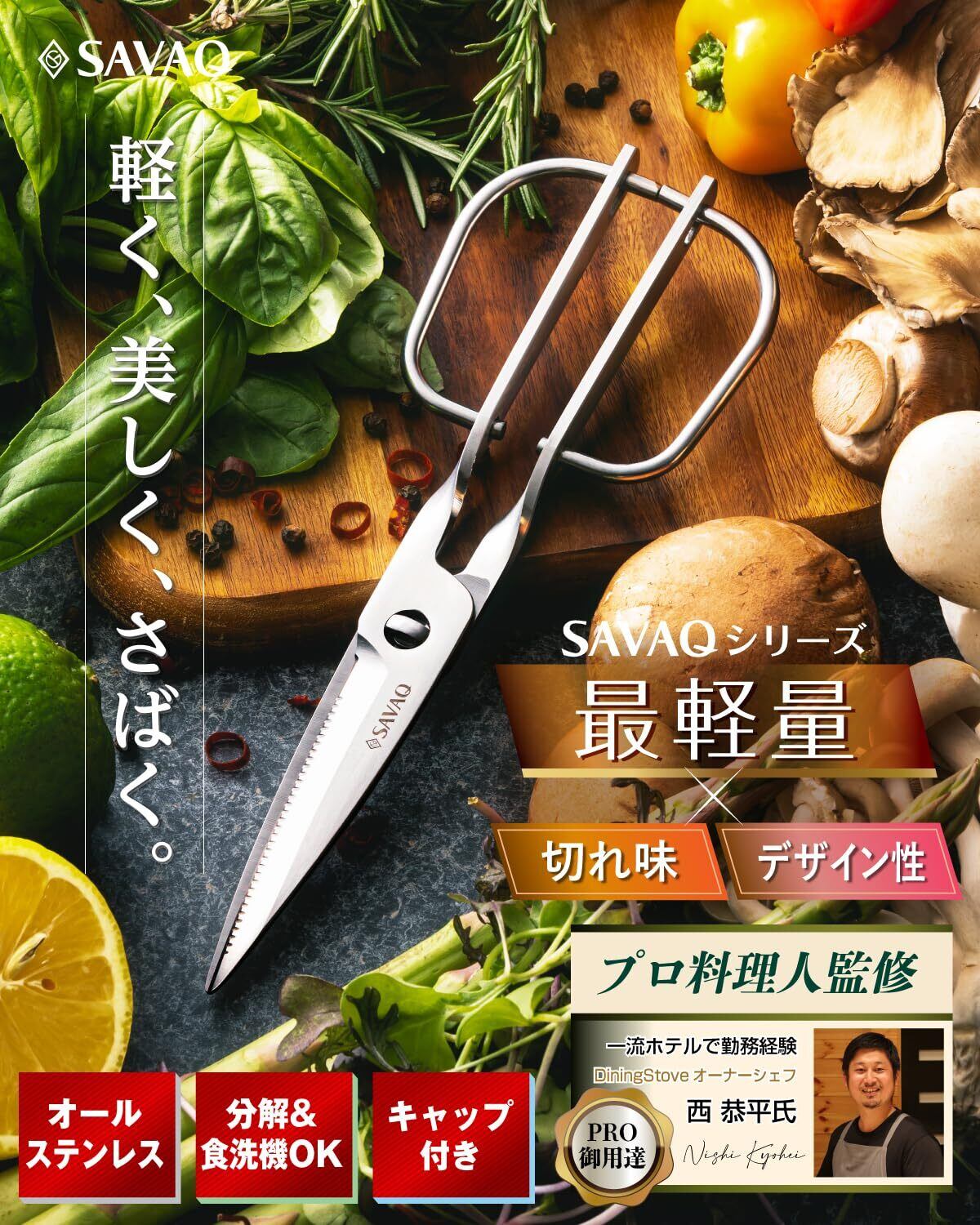 【プロ料理人が監修】SAVAQ キッチンバサミ 料理はさみ 分解 オールステンレス 食洗機対応 軽量タイプ
