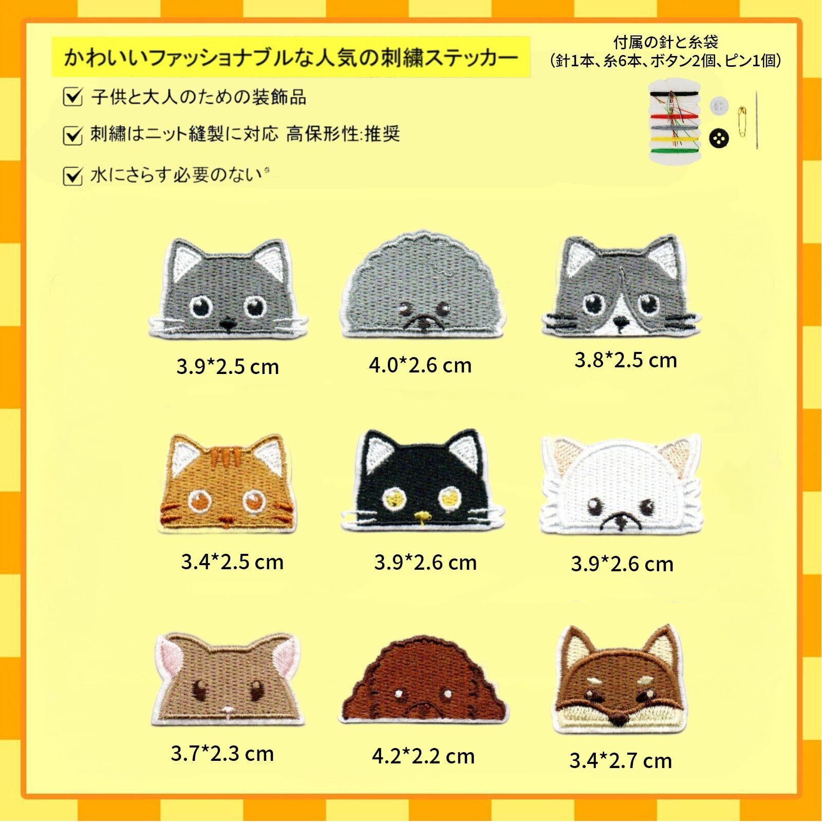 【在庫処分】aninako ワッペン 刺繍 動物 貼り付けまたは縫い付け アップリケ ワッペン 子供 動物 人気セット 刺繍 ワッペン アイロン ワッペン 手芸 男の子 女の子 かわいい おしゃれ 可愛い 入園 入学 幼稚園 保育園 小学校 大人 (9枚【かわいい猫】)