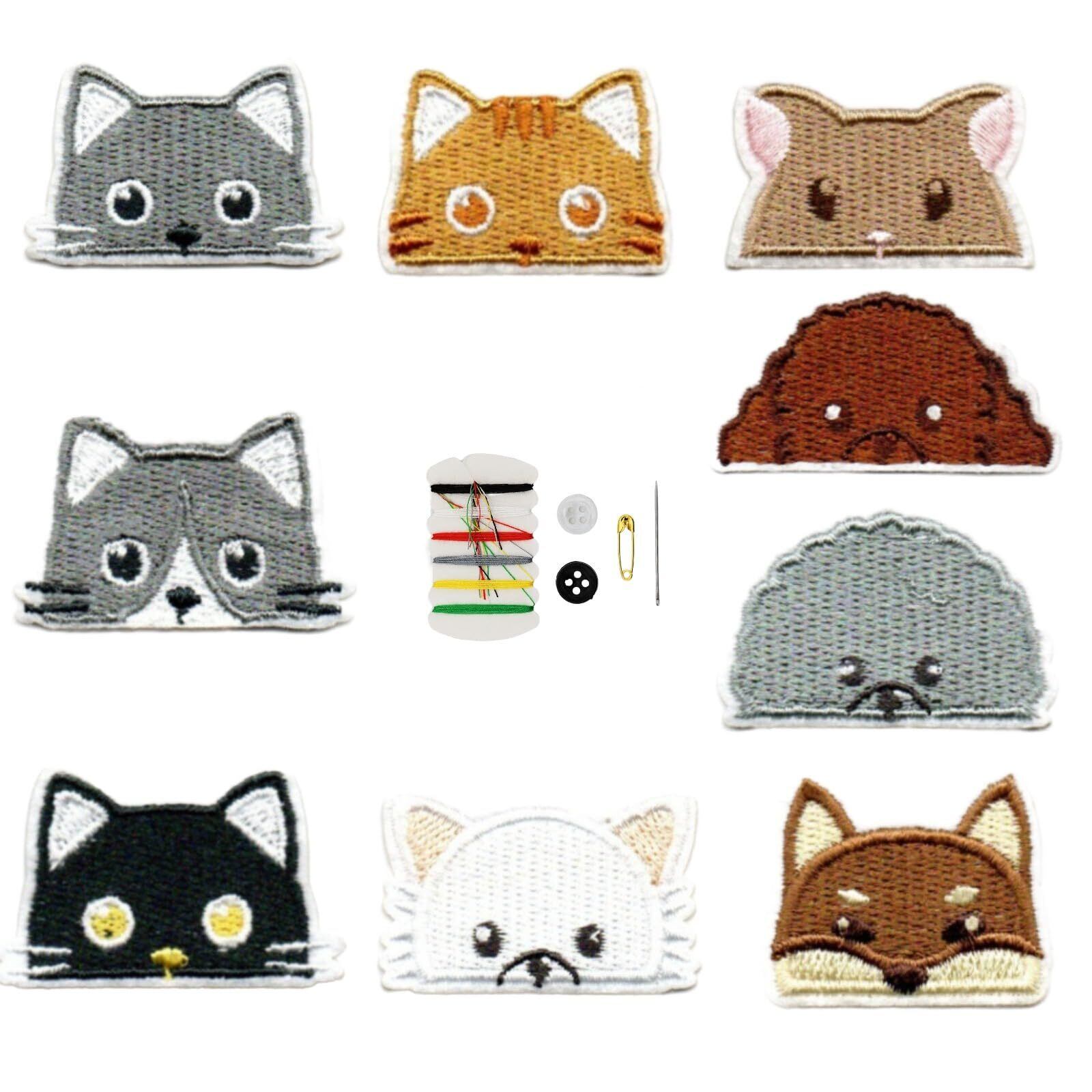 aninako ワッペン 刺繍 動物 貼り付けまたは縫い付け アップリケ ワッペン 子供 動物 人気セット 刺繍 ワッペン アイロン ワッペン 手芸 男の子 女の子 かわいい おしゃれ 可愛い 入園 入学 幼稚園 保育園 小学校 大人 (9枚【かわいい猫】)
