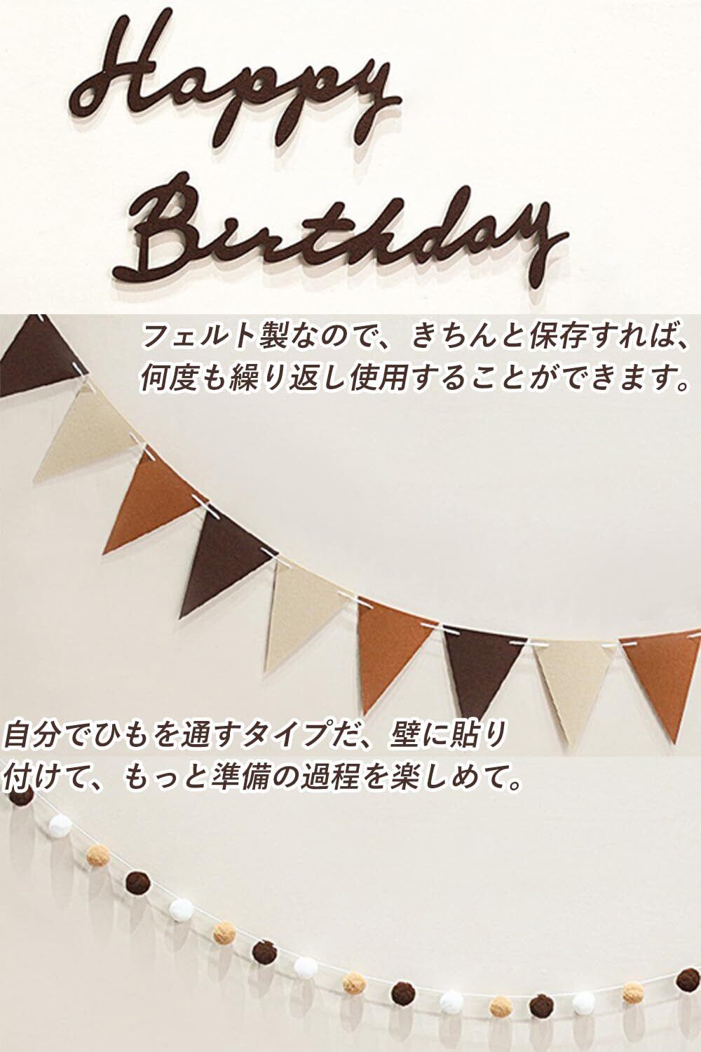 harukita 誕生日 飾り付け バースデー 飾り 写真背景 シンプル 装飾 フェルト生地 壁掛け 女の子 男の子 大人 三角旗ガーランド フグボールガーランド happy birthday