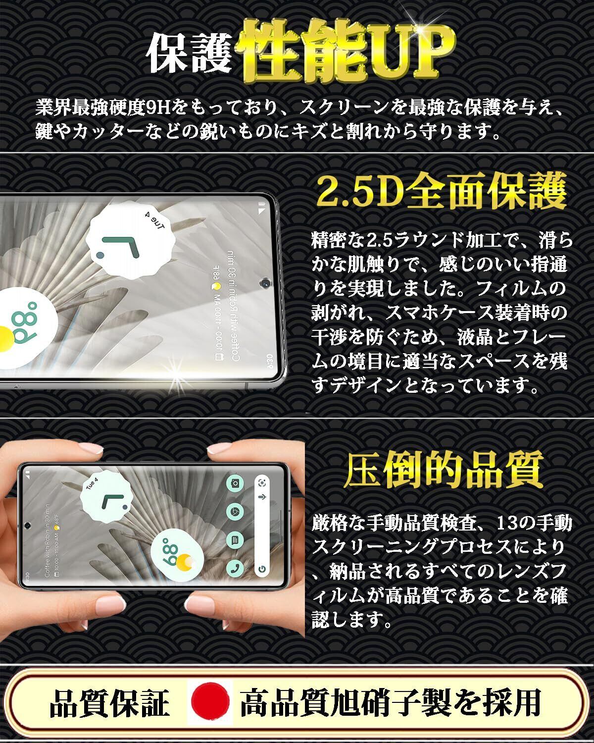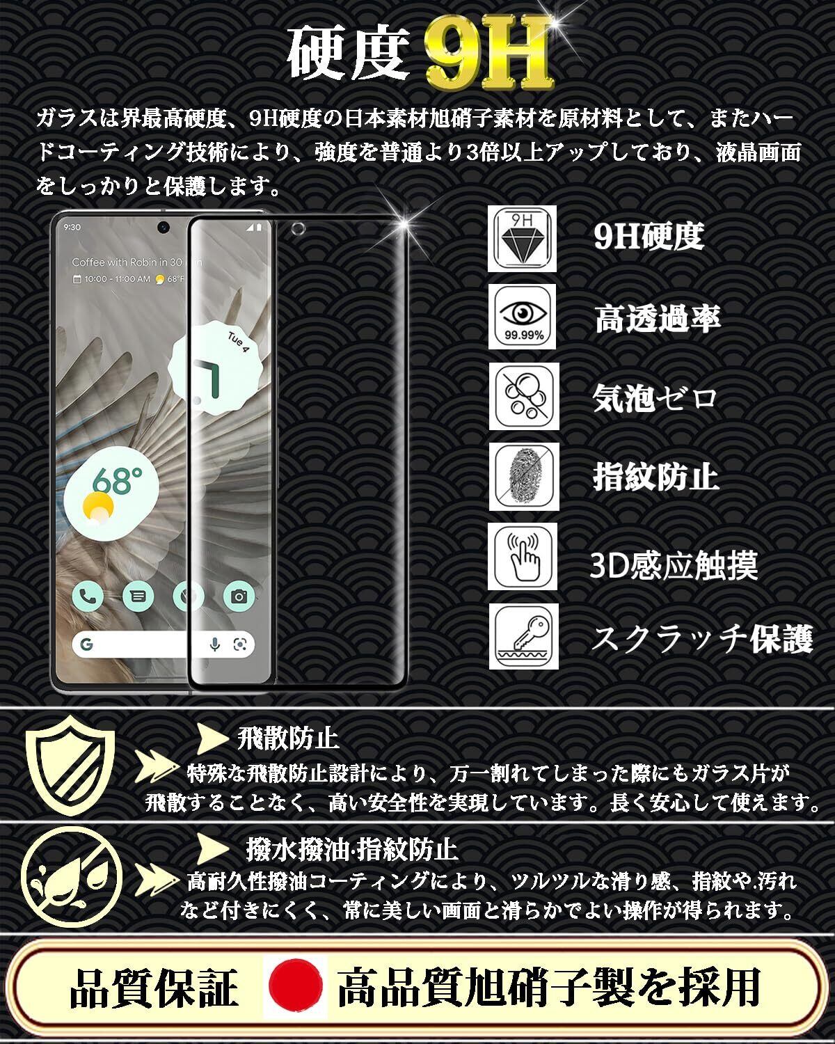 対応 Google Pixel 7 Pro ガラスフィルム 指紋認証対応 Google Pixel 7 Pro 全面保護フィルム 日本旭硝子製素材 9H硬度 指紋防止 飛散防止 気泡ゼロ 干渉しない 貼り付け簡単 グーグル ピクセル 7 Pro 強化ガラス 液晶保護フィルム【6.7インチ-1枚セット】
