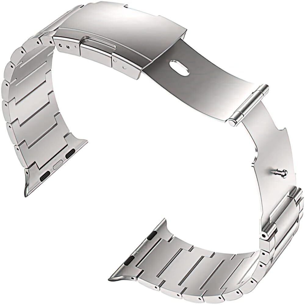 MaKTech チタンバンド、金属ベルトトータスバックル付き、Apple Watch 11/10/9/8/7,Ultra 3/2/1,SE 3/2/1 [2025]に対応 (46mm/45mm/44mm/49mm,シルバー)