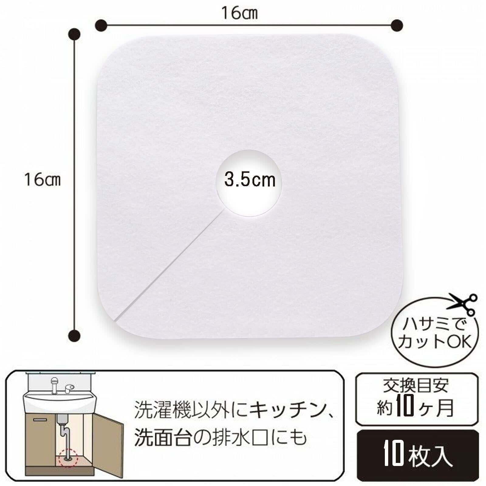 ISTORA 洗濯機排水口ゴミフィルター 排水パイプカバー 簡単装着 カット可 取り付けテープ付き 虫対策 洗面台 (10枚入)