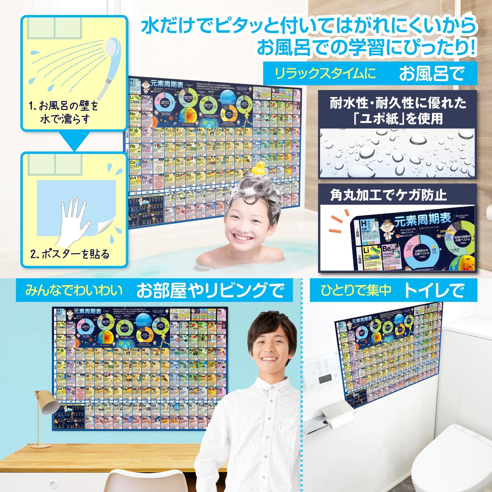 お風呂の学校 元素周期表 お風呂ポスター 日本製 元素記号 理科 化学 学習 知育 A2サイズ 防水