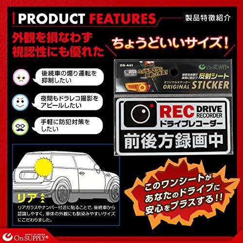 オンサプライ(On SUPPLY) 反射ステッカー 「ドライブレコーダー 前後方録画中」 白 煽り運転抑止 OS-441