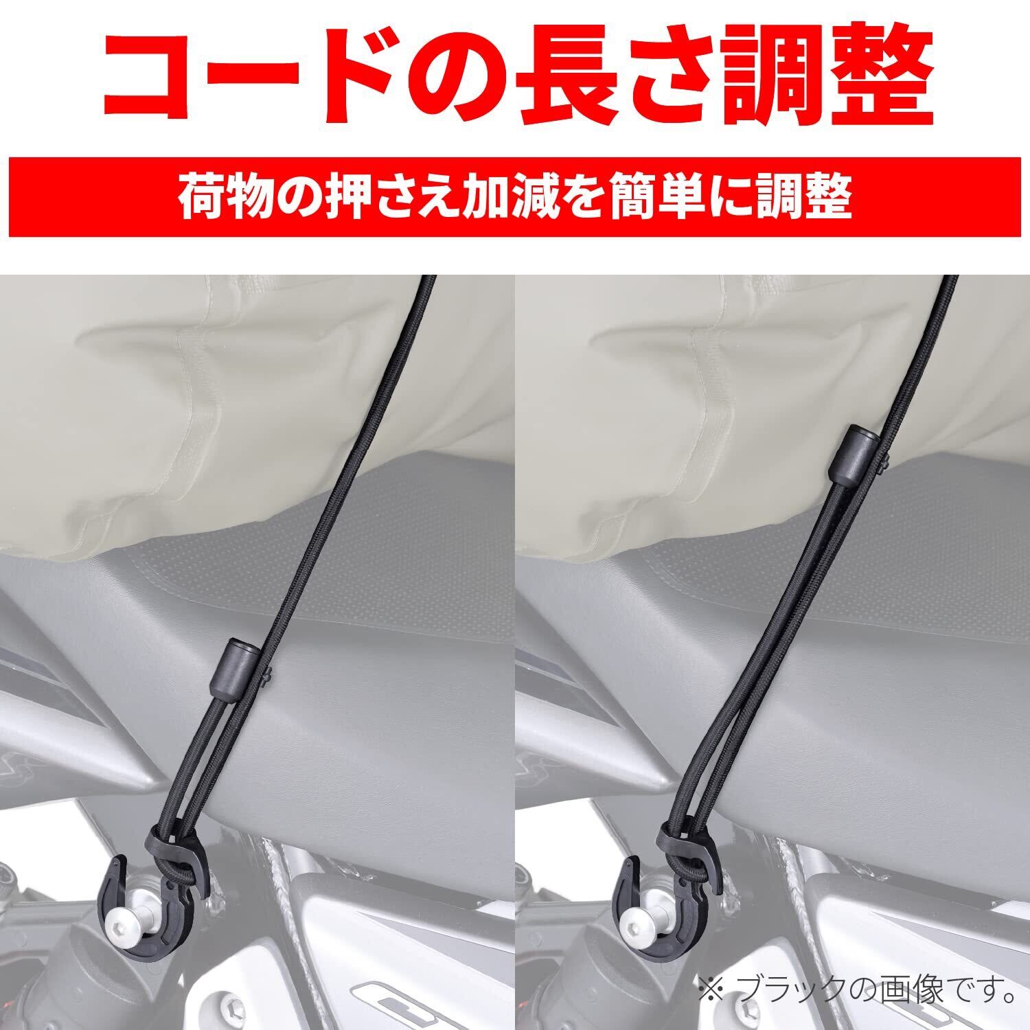 【用途】荷物の量に合わせてコードの長さを調節できるバイク用ストレッチコード