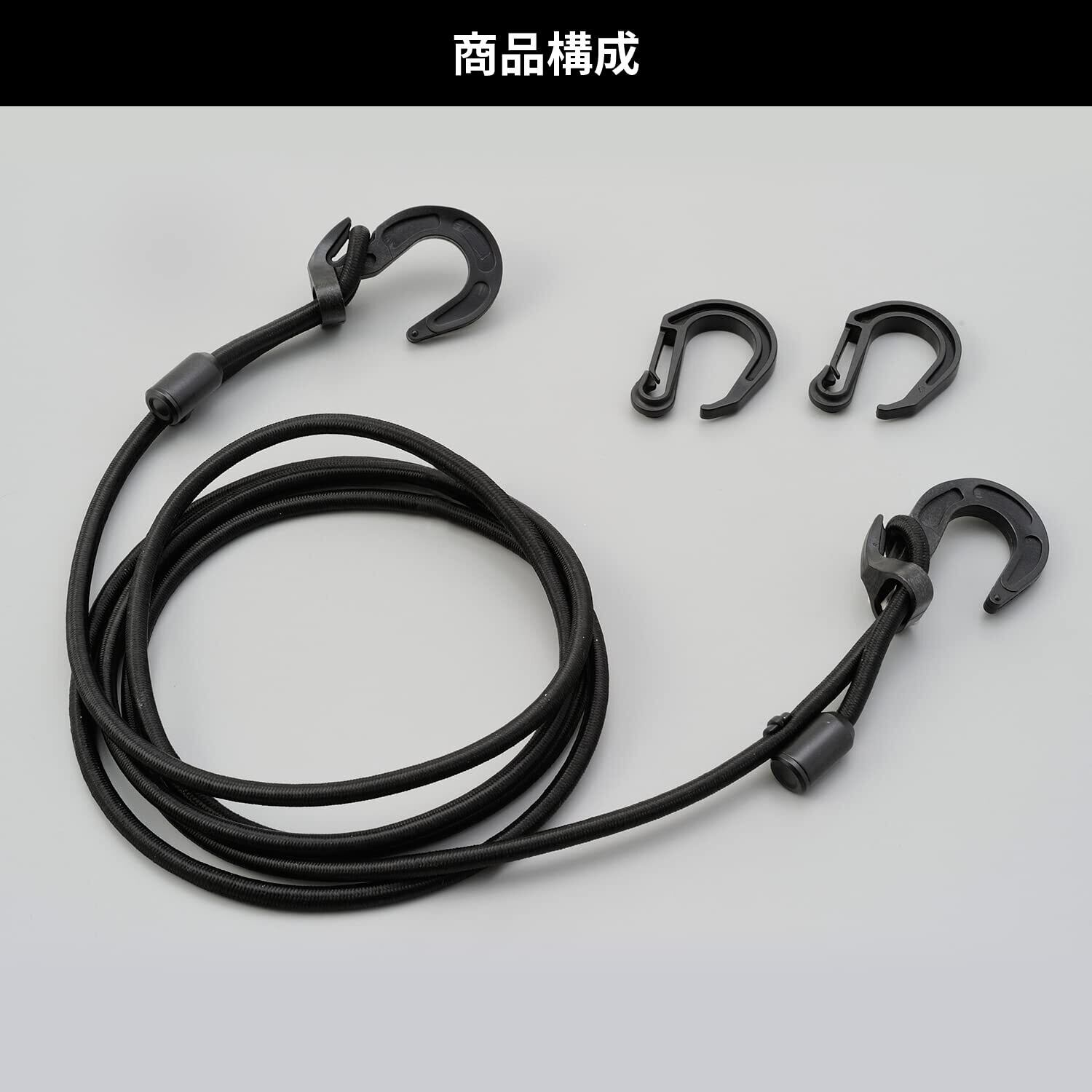 デイトナ(Daytona) バイク用 荷台 ゴムひも 長さ調整式 ストレッチ コード&フック 2.5m ブラック 72213