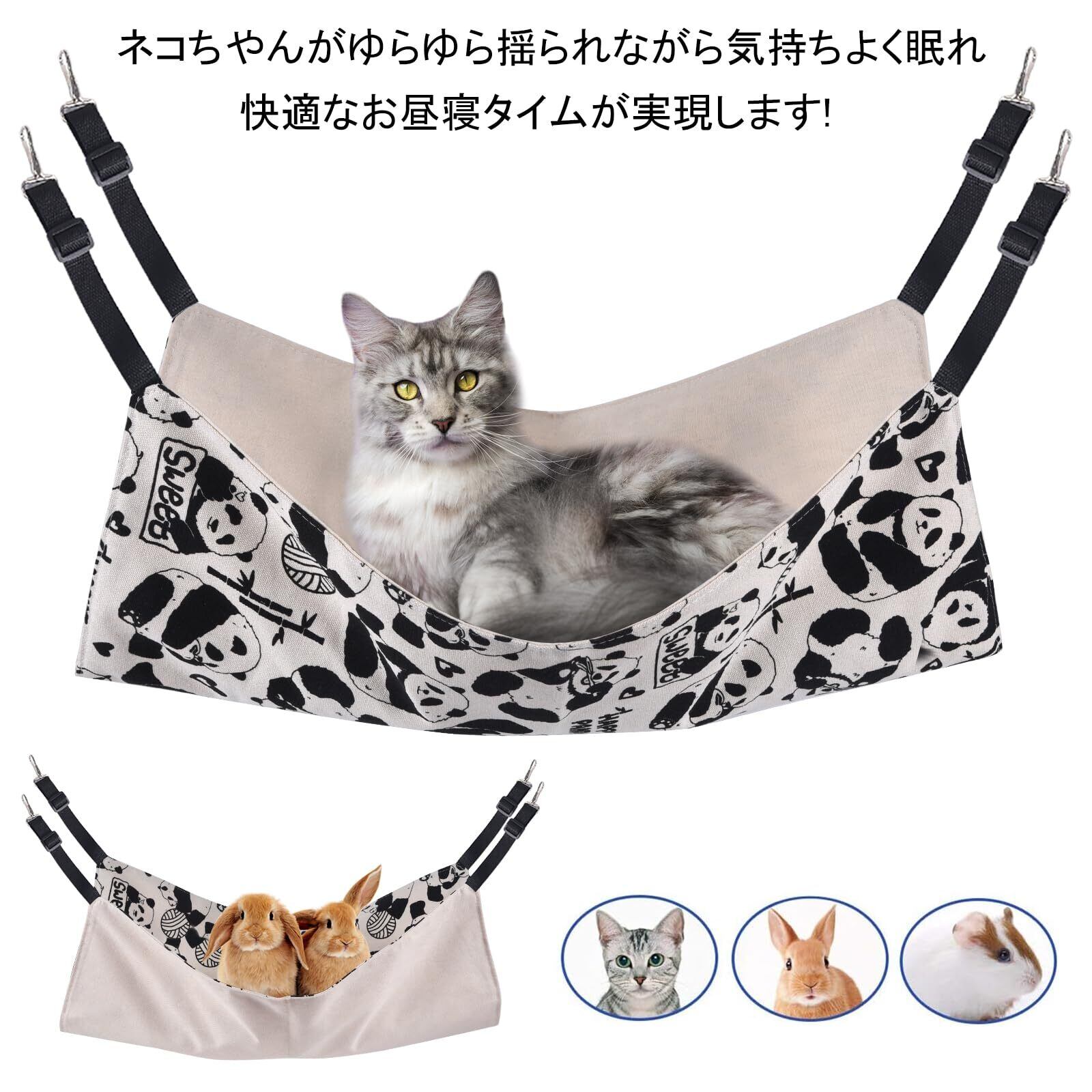 【最新デザイン】可愛いパンダのデザインを取り入れ、モノクロの組み合わせで、より高級感を演出しています。ハンモックの両面とも優れた帆布生地が採用されている,四隅に縫製でとても頑丈です,ベルトの長さを調節できます,金物工具は昇級で補強され,折れにくい。猫ハンモックを探している方に、こちらのハンモックをいい選択としてお勧めですよ。