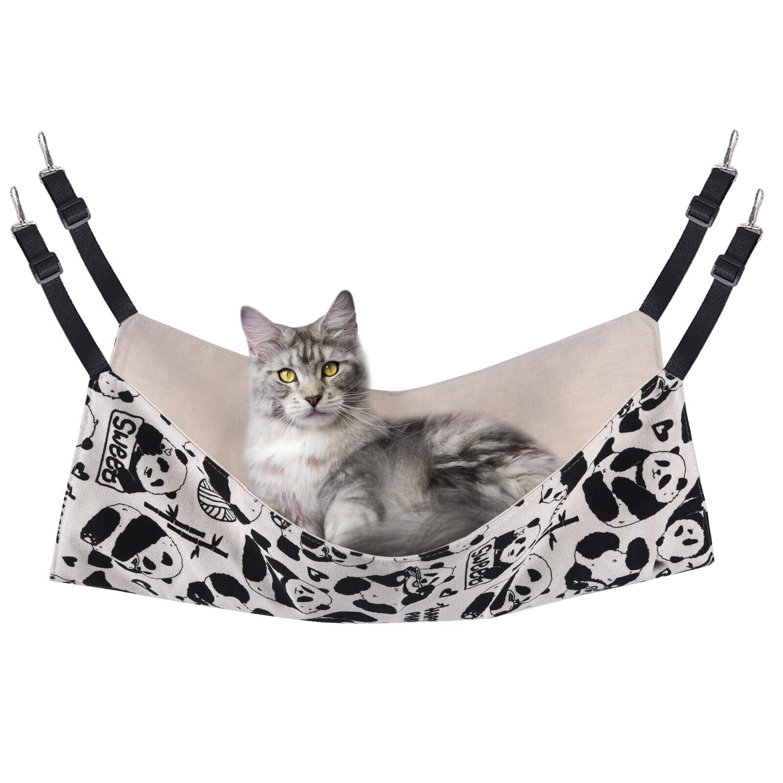 猫 ハンモック Blueekin キャットハンモック ヒモ調整可能 ペット ベッド ネコハンモック ケージ用 耐荷重10KG 大きい 56cm x 46cm 通気性 日向ぼっこ 遊び場 丸洗い 金具丈夫 夏冬両用(パンダ)