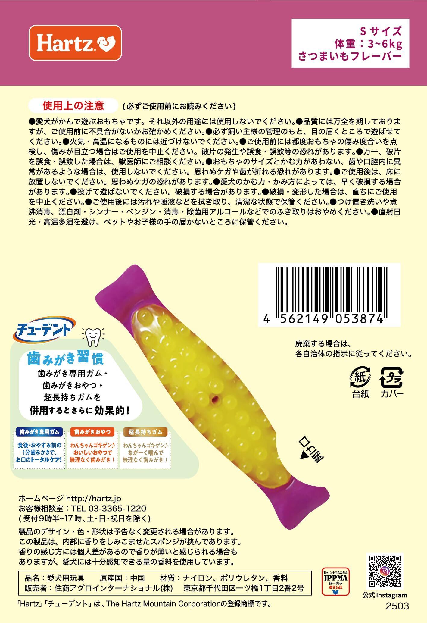 チューデント 歯みがきおもちゃ ボーン S 超小型犬 さつまいもフレーバー ×2個 ハーツ (Hartz) 犬用おもちゃ 犬用玩具 歯磨き デンタルケア 獣医師と開発