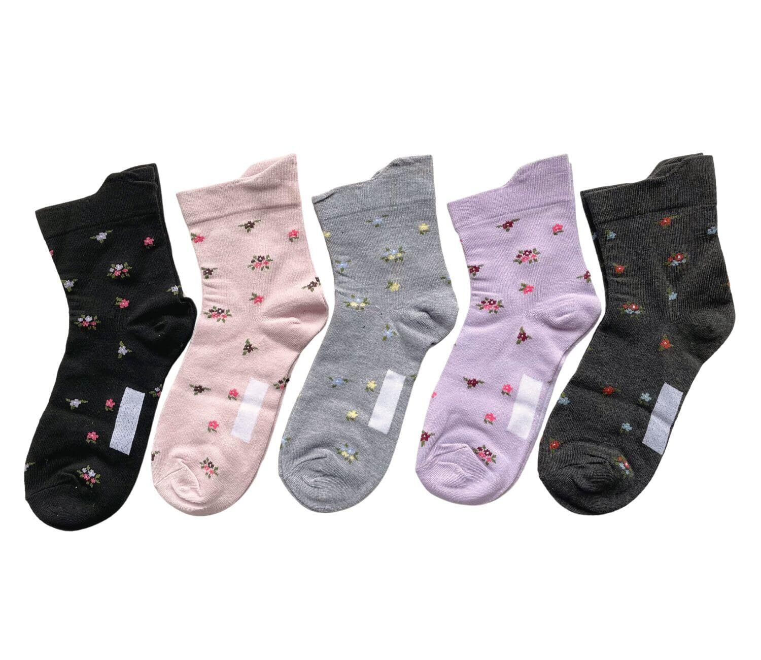 [モードセレクト] ソックス レディース 介護 靴下 5足組 片手で履ける 口ゴムゆったり 綿混 名前が書ける 靴下 施設 病院 花柄 5足セット(色はお任せ) G09