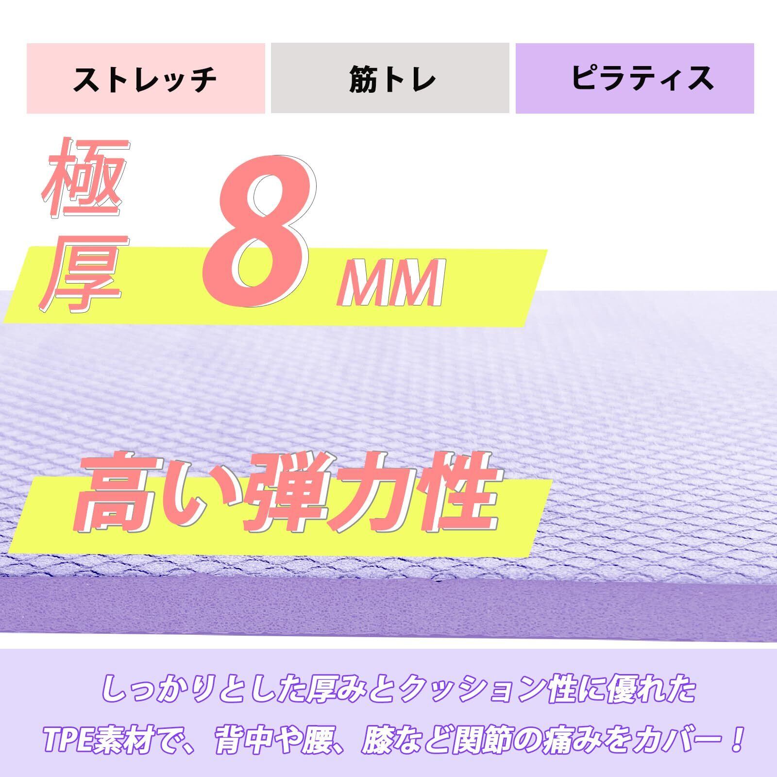 【厚さ8mm】サイズ:183*61*0.8cm、厚さがちょうど良く、変形しにくく、優れたクッション性を備えており、臀部、膝、肘に快適さを提供します。背面と表面には滑り止めのストライプがあり、グリップ力が強く、運動がより安全です。防音性能が非常に優れており、振動を効果的に吸収するため、アパートでのエクササイズに最適です!