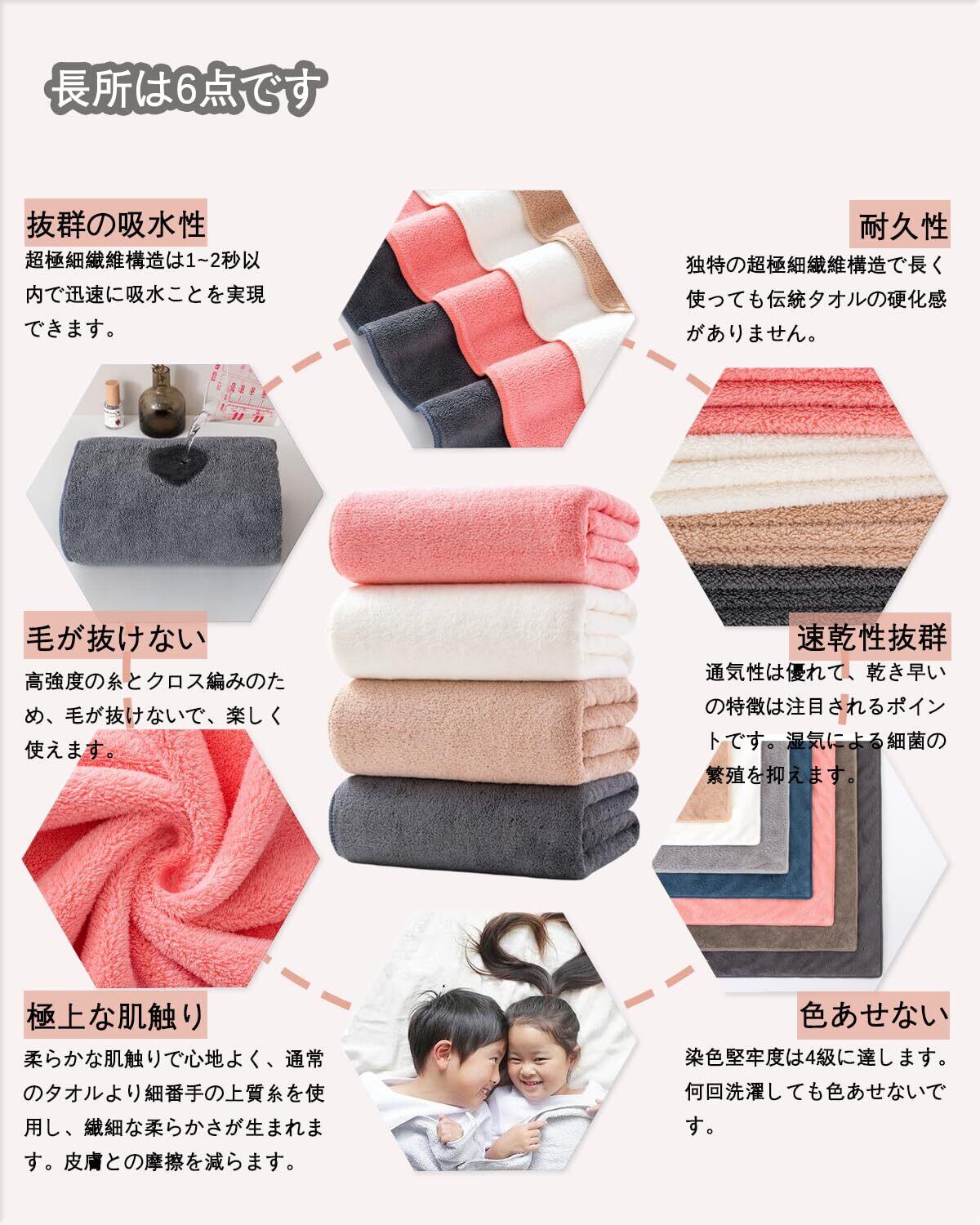 バスタオル 瞬間吸水 マイクロファイバー ホテル仕様 大判 【Lumimi 70*140cm 4色4枚セット】 強い吸水速乾 ふわふわ 肌触り お風呂上がり耐久性 バス用品(ピンク、アイボリー、モカブラウン、グレー)