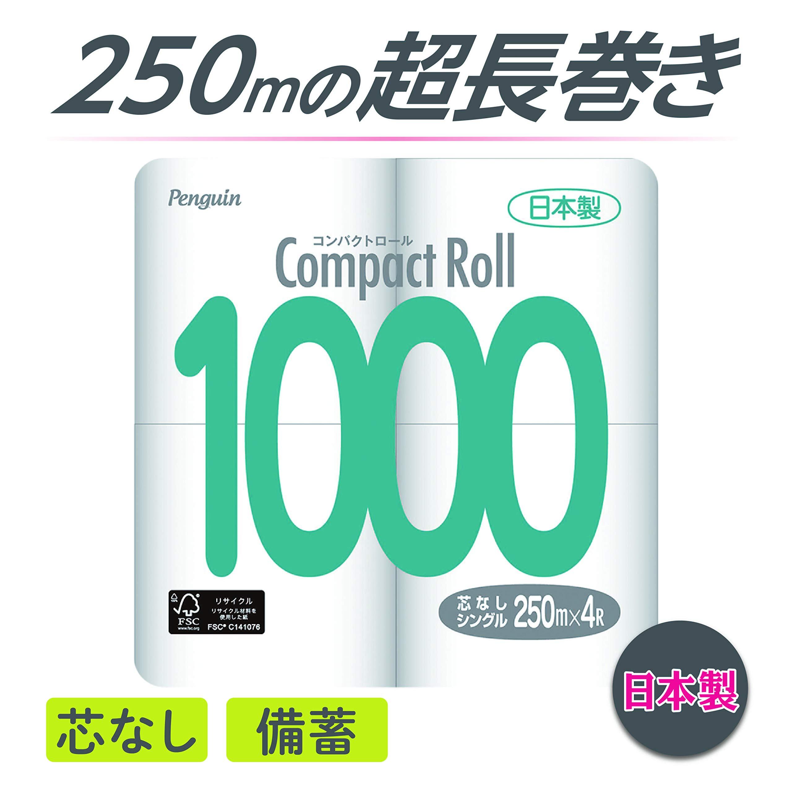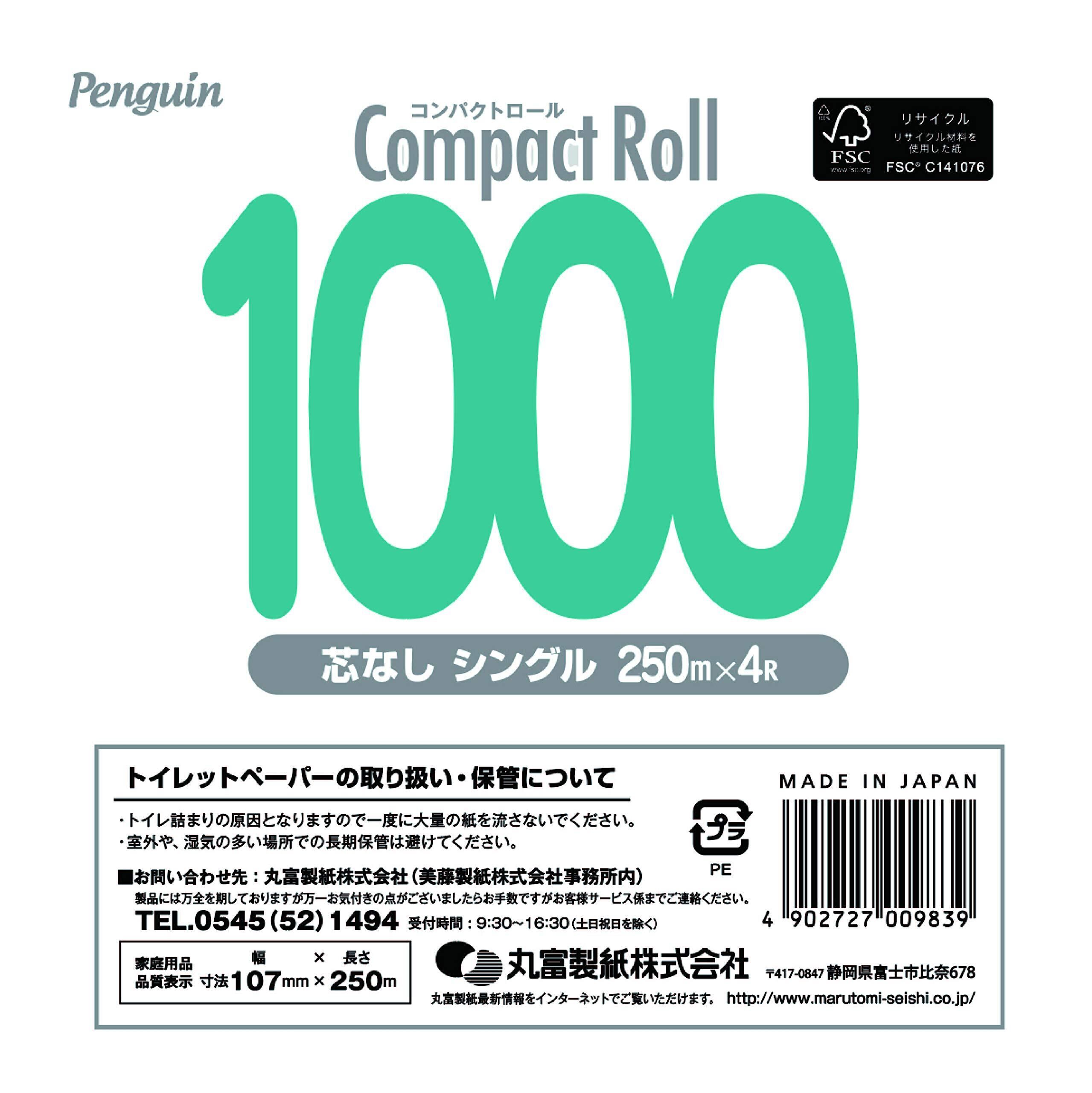 【特価セール】【ケース販売】丸富製紙コンパクト1000トイレットロール 再生紙 4Rシングル×4入