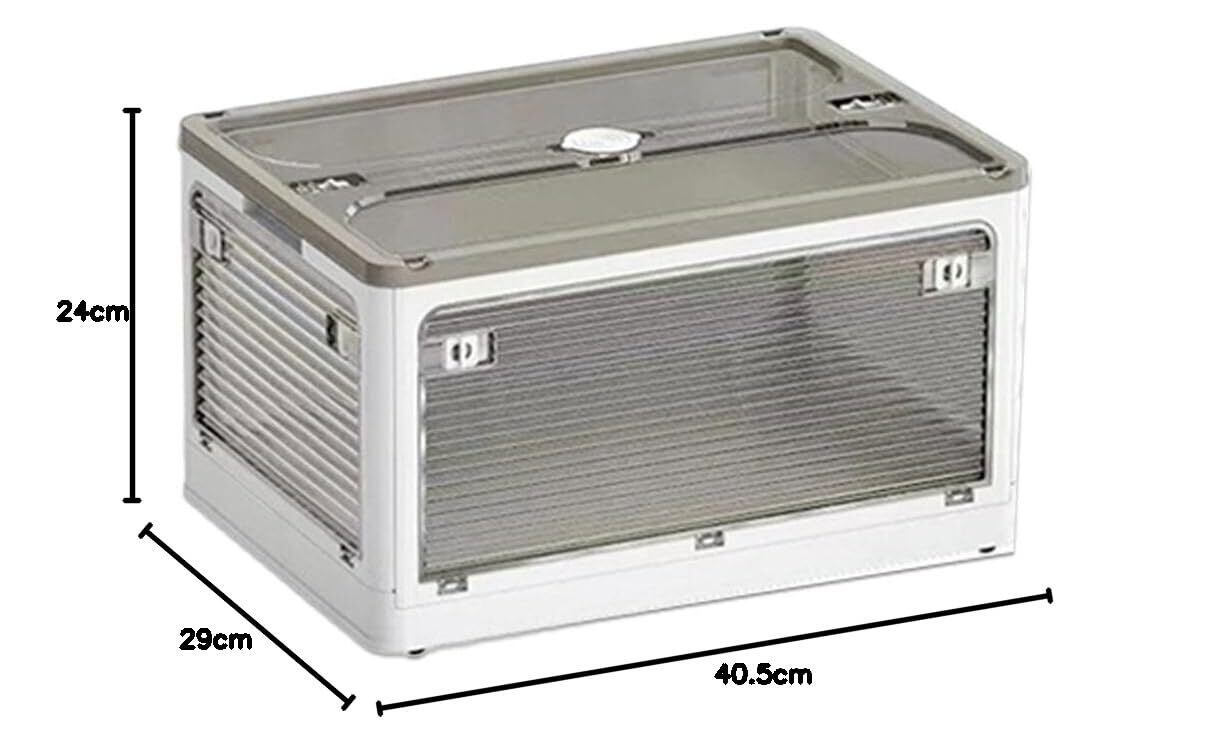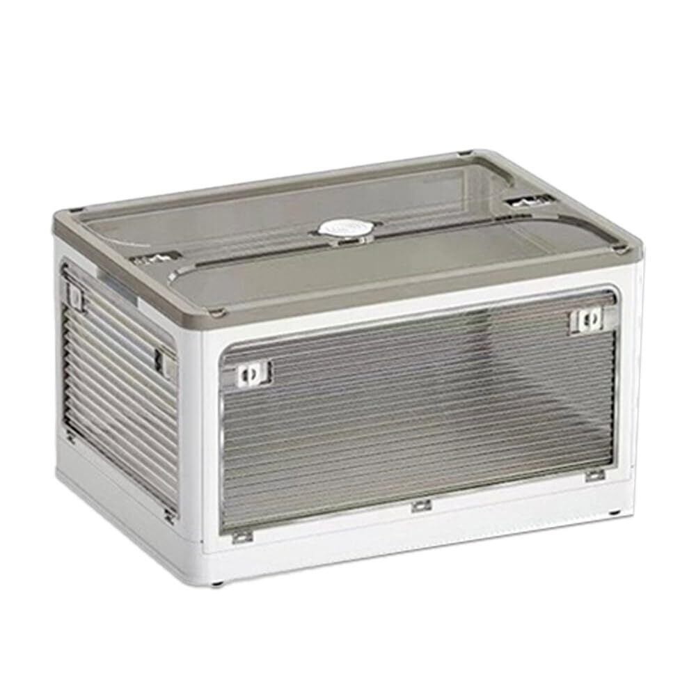 【在庫処分】タマトシ 収納ボックス 全方向から取り出せる 透明 蓋付き 折りたたみ式 大容量 防災 収納ケース 積み重ね可能 衣替え 洋服 非常食 地震対策 避難用 防災グッズ収納 ホワイト Sサイズ