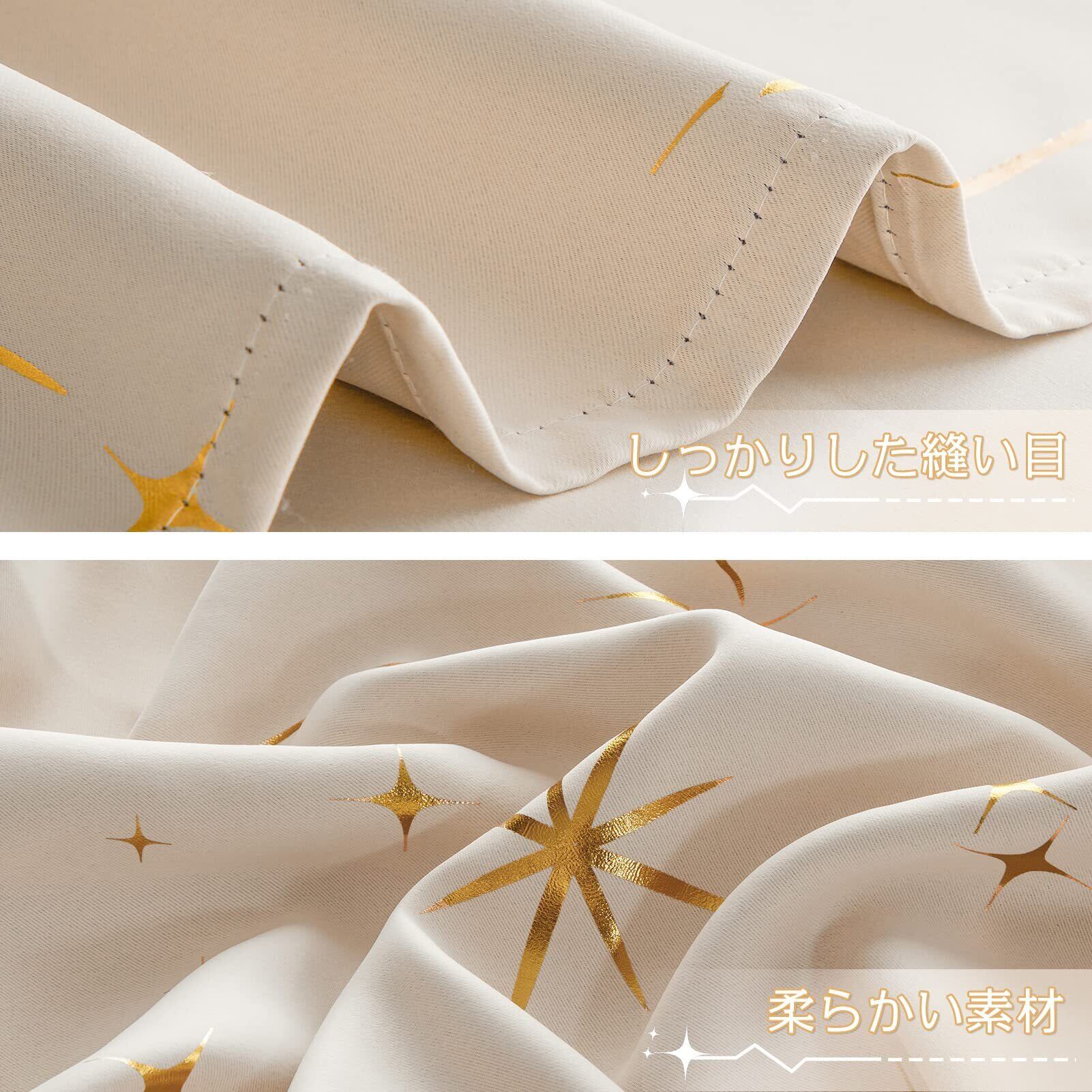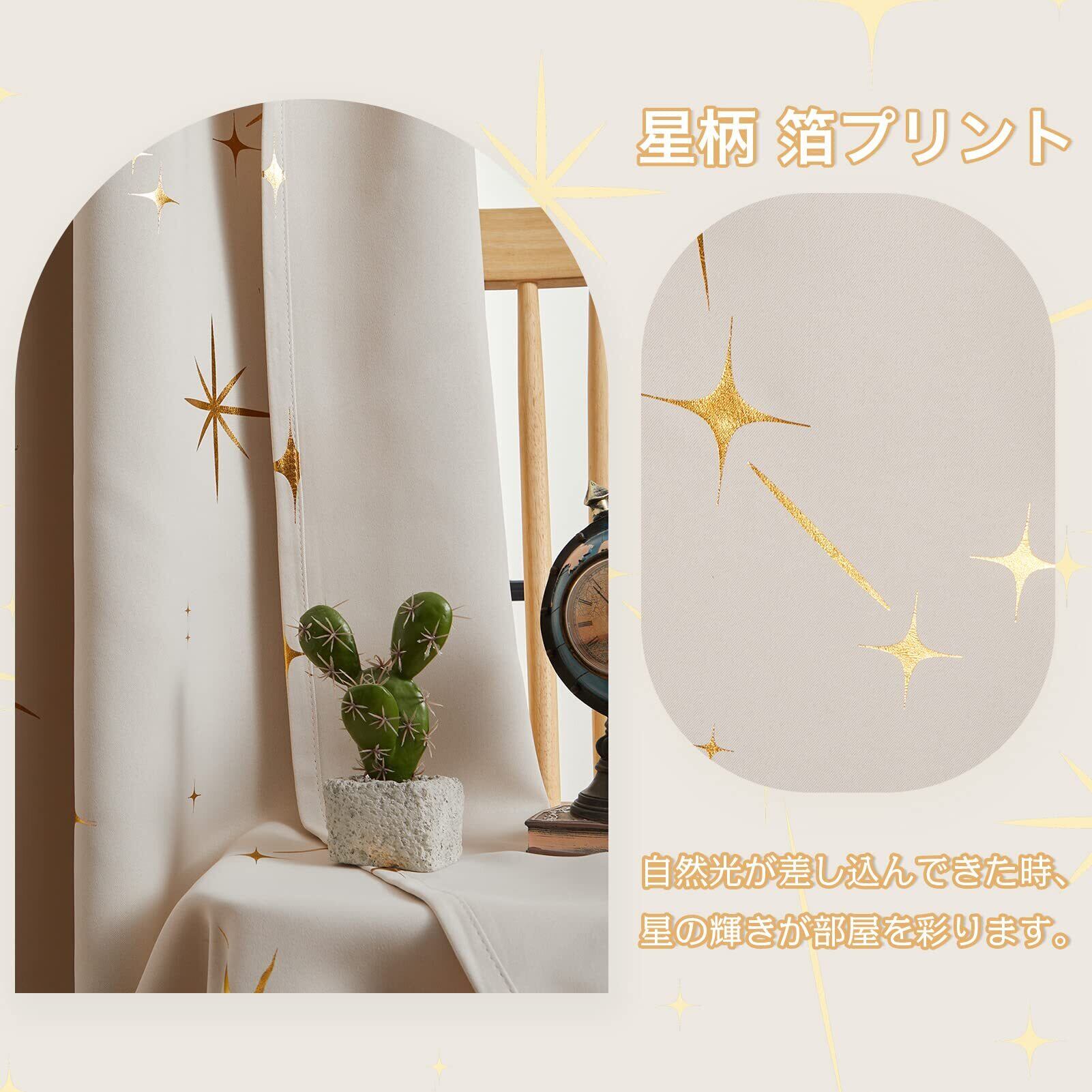 【数量限定】Topfinel カーテン 遮光 おしゃれ 星柄 箔プリント 遮光カーテン 2枚組 ベージュ 小窓 カフェカーテン 省エネ 断熱 寝室 防音カーテン 既成 カーテン 断熱カーテン 100cmx135cm