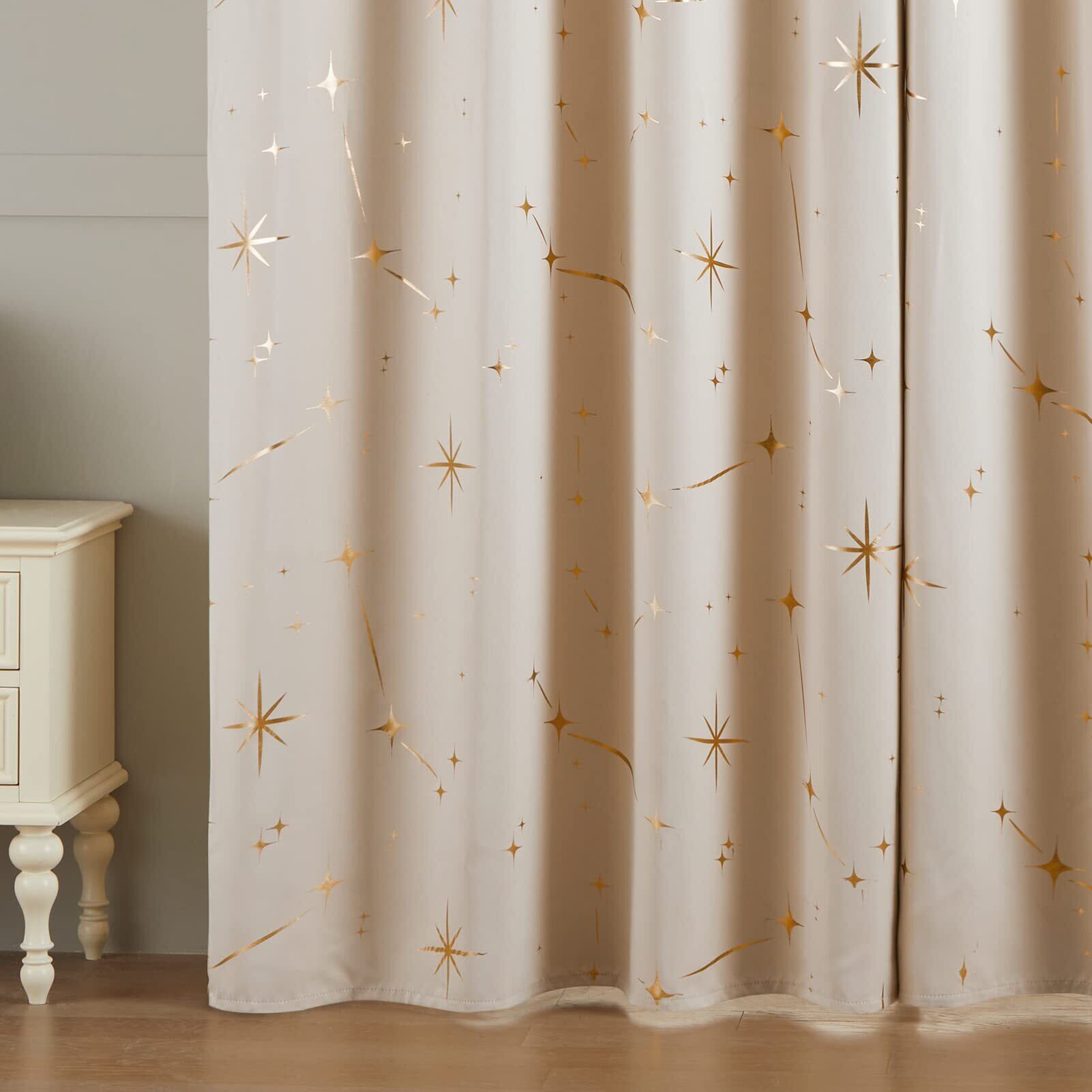 Topfinel カーテン 遮光 おしゃれ 星柄 箔プリント 遮光カーテン 2枚組 ベージュ 小窓 カフェカーテン 省エネ 断熱 寝室 防音カーテン 既成 カーテン 断熱カーテン 100cmx135cm