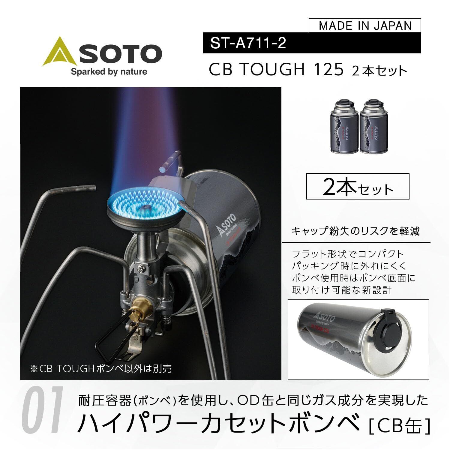 ソト(SOTO) 日本製 CB缶 ハイパワー カセットボンベ アウトドア CB TOUGH 125/220 単品/2本セット/12本セット