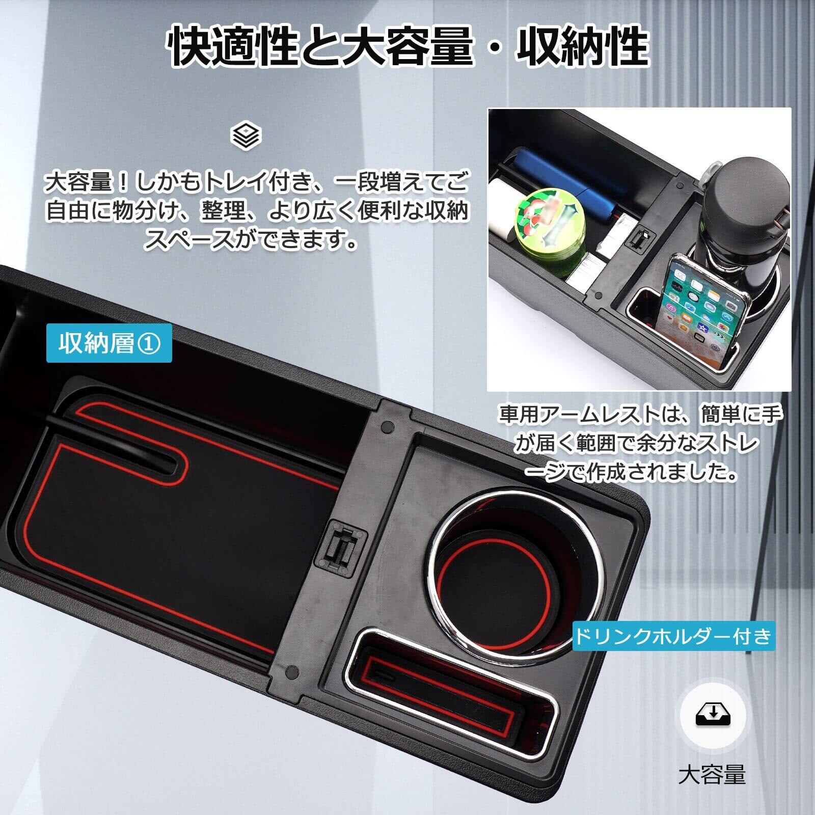 LIMSTYLE トヨタ ヤリスクロス 専用 アームレスト YARIS CROSS 2020年8月〜 コンソールボックス 車内収納ボックス スライド式 ドリンクホルダー機能搭載 トレイ内蔵 大容量 肘掛け 肘置き 長距離ドライブ 新オリジナル版 装着簡単 レッドステッチ