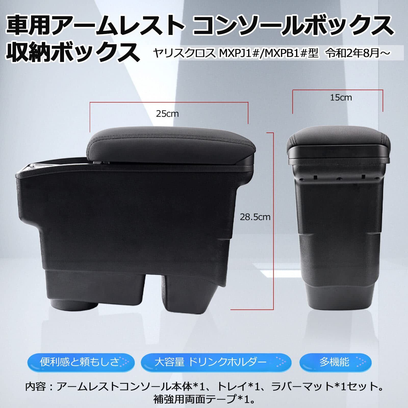 4.【ヤリスクロス収納には最適】:ヤリスクロス専用アームレスト*1、内部トレイ*1、マット*3。肘掛けとしてだけではなく、傘や水、コインや鍵などを入れる大容量収納ケースとして使え、車内をキレイに!さらに、スポーティさとスタイリッシュを両立させており、お手軽いに想像以上のドレスアップ効果をもたらします。