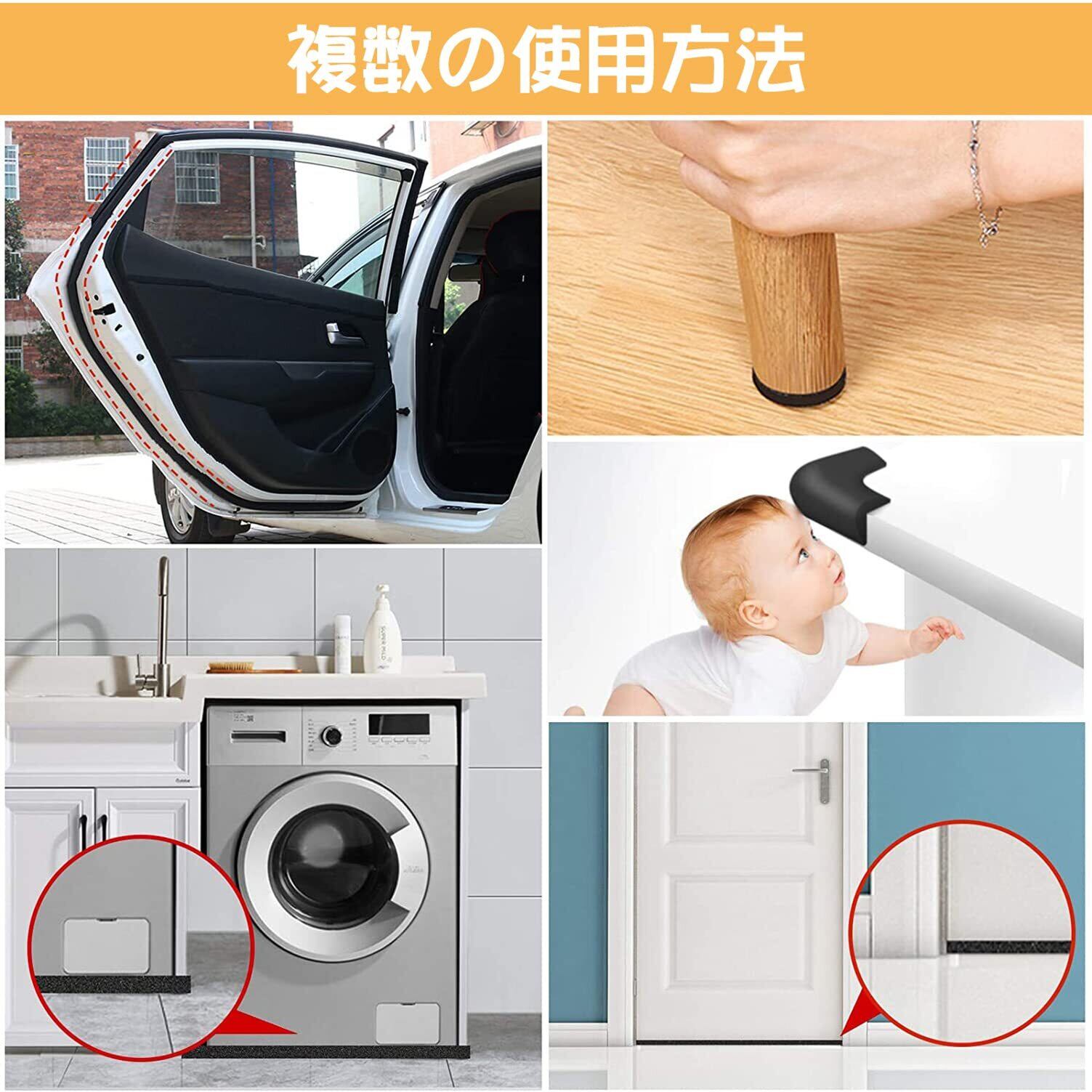 【広く用途】すきまテープは、さまざまなドアシールや窓の断熱材、家具、電気キャビネット、車、スピーカー、おもちゃ、手工芸品、スポーツ用品などで広く使用されています。