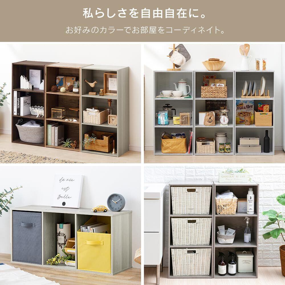 シンプルなデザインでどんなお部屋にもなじみやすく、使いやすさを追求した3段タイプのカラーボックスです。収納スペースとして本や小物、日用品などをすっきり整理できるため、リビングや子供部屋、オフィスなど幅広いシーンで活躍思案す。