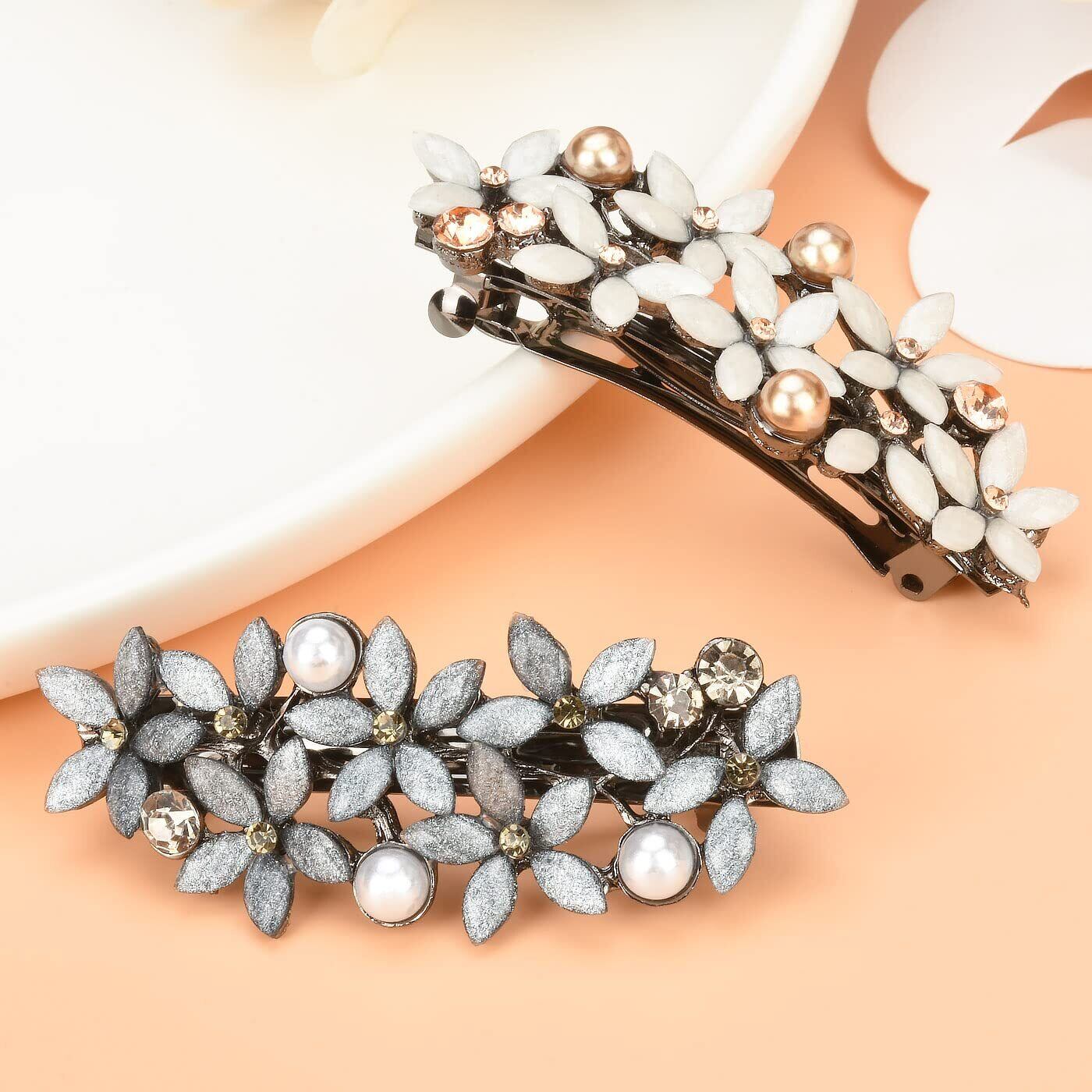 mefeny ヘアクリップ バレッタ パール お花 キラキラ 髪留め 髪飾り ヘアアクセサリー レディース 結婚式 パーティー 入学式 お呼ばれ 卒業式 (白)