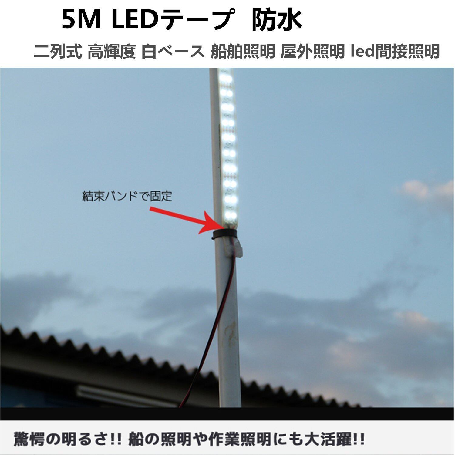 LEDテープ 24V 防水 SunnyNight ブランドタグ [正規品] 5M ホワイト SMD5050 600連 高輝度 白ベース 船舶照明 屋外照明 led間接照明 カバー付 作業灯 トラック 正面発光 (24V)