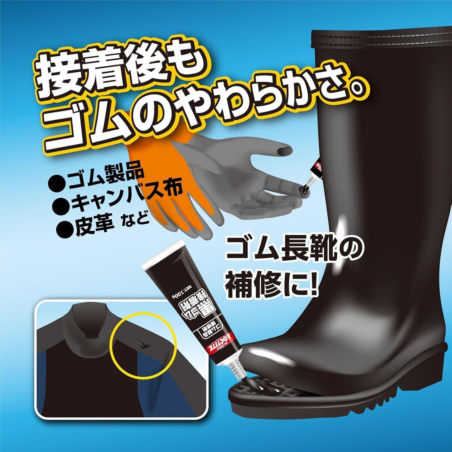 低粘度:長靴や戸当たりゴム、靴底などゴム状物質の補修に適しています。
