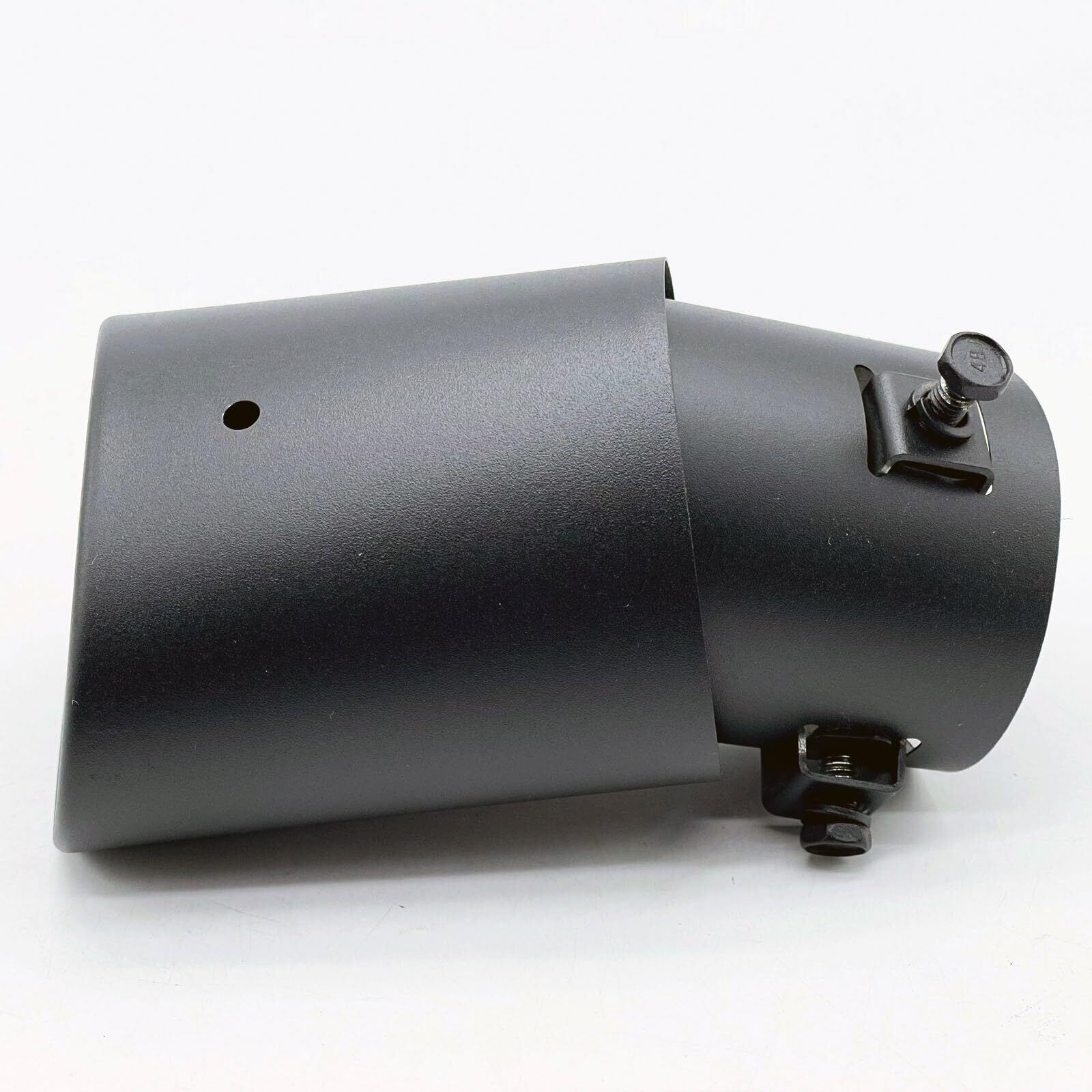 ボルト締め付けタイプで取り付けも簡単。取り付け可能な管外径は38mmから53mmです。必ずお車のマフラー形状をご確認ください。