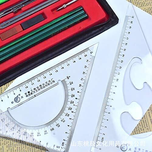セット内容:大型三角定規、大型デバイダー 、大型コンパス 、鉛筆(2H,2B,HB) 、消しゴム、テープ、カッターナイフ 他。