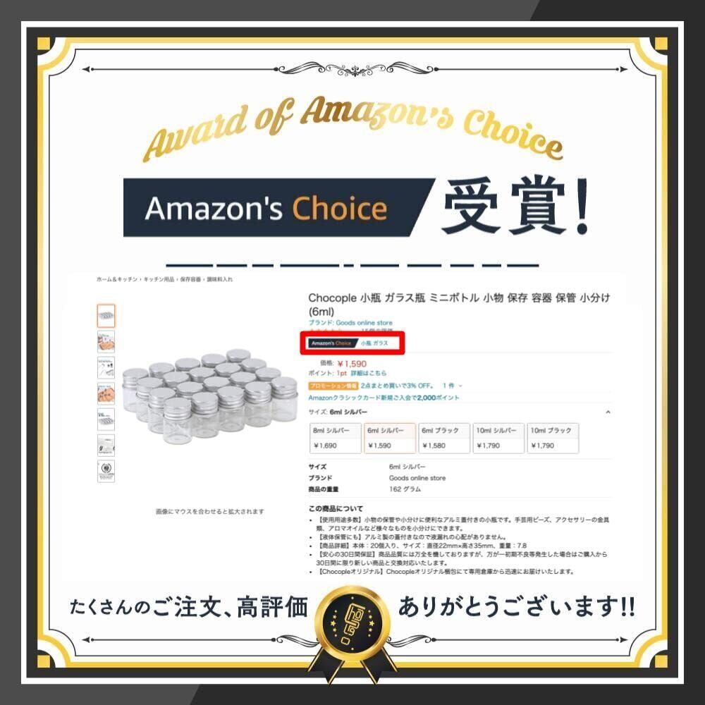 【新着商品】Chocople 小瓶 ガラス瓶 ミニボトル 小物 保存 容器 保管 小分け (8ml シルバー)