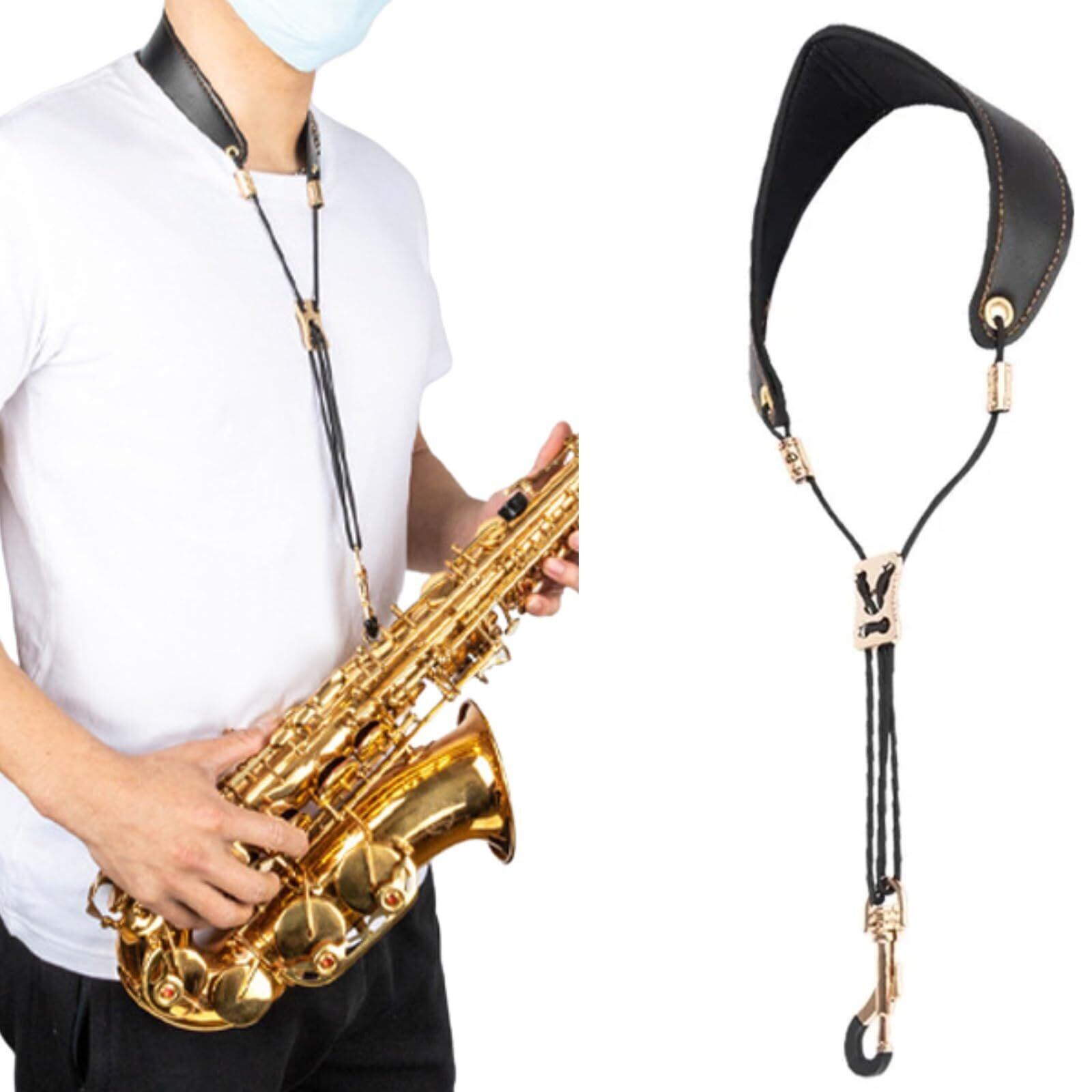 [FrugeL] サックスストラップ ネックストラップ サックス 子供 大人 長さ調節可能 肩掛け ネックパット付き クラシック 楽器用ストラップ (ブラック)