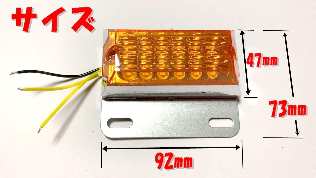 ?【取り付け】ステーが付いておりますので簡単に取り付け可能です。結線は黒1本をマイナスに、黄色は2本ともプラスに繋いで下さい。どちらか1本が6列のうち外側4列、もう1本が中央2列の点灯となります。(結線のやり方で3通りのバリエーションでの点灯パターンが出来ます)