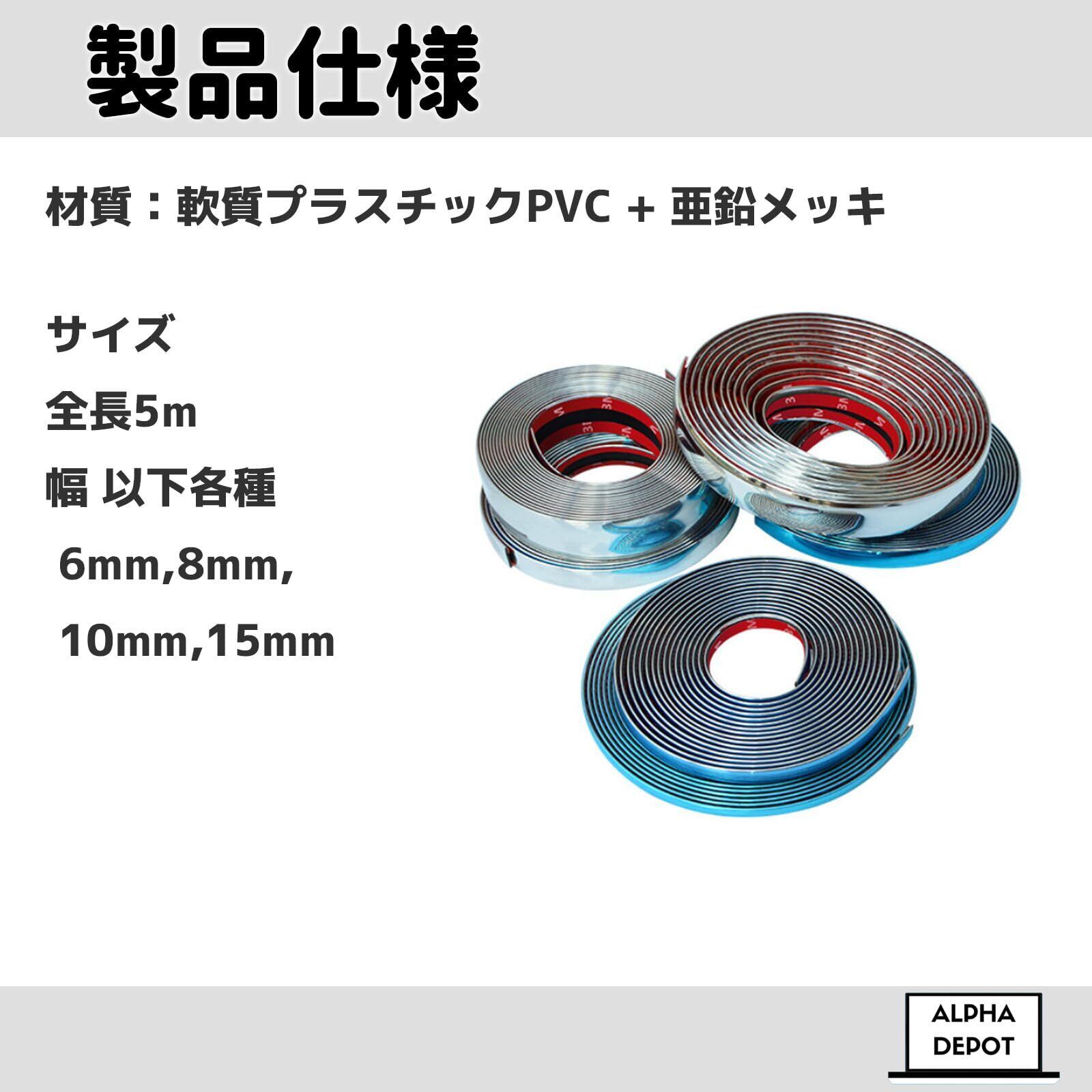 Alpha Depot 車用モール マルチモール ボディー バンパー 保護 フェンダーモール クロムメッキ インテリア ドアモール ドアガード メッキテープ 傷防止 3M両面テープ (シルバー 長さ5m 幅10mm)